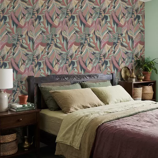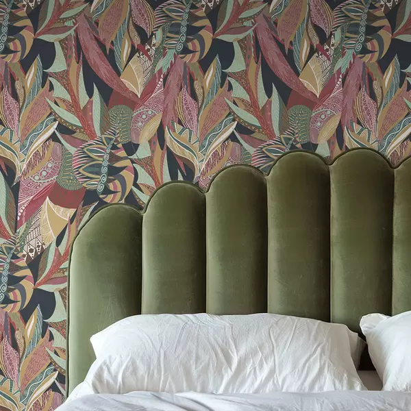 Tapeet Värvilised mustrilised lehed tumedal taustal Nr. a01120