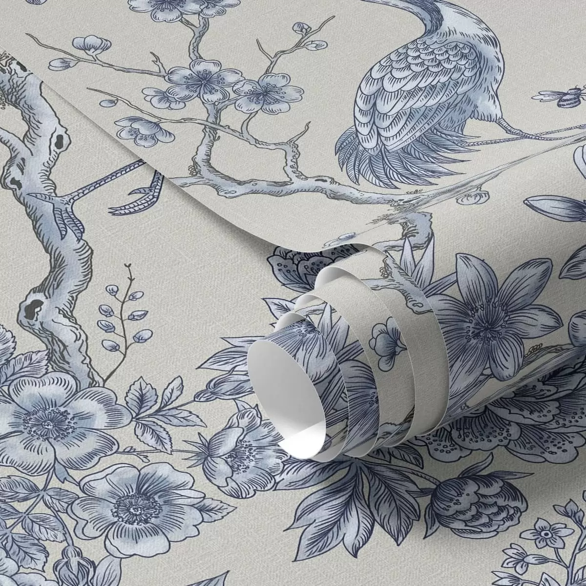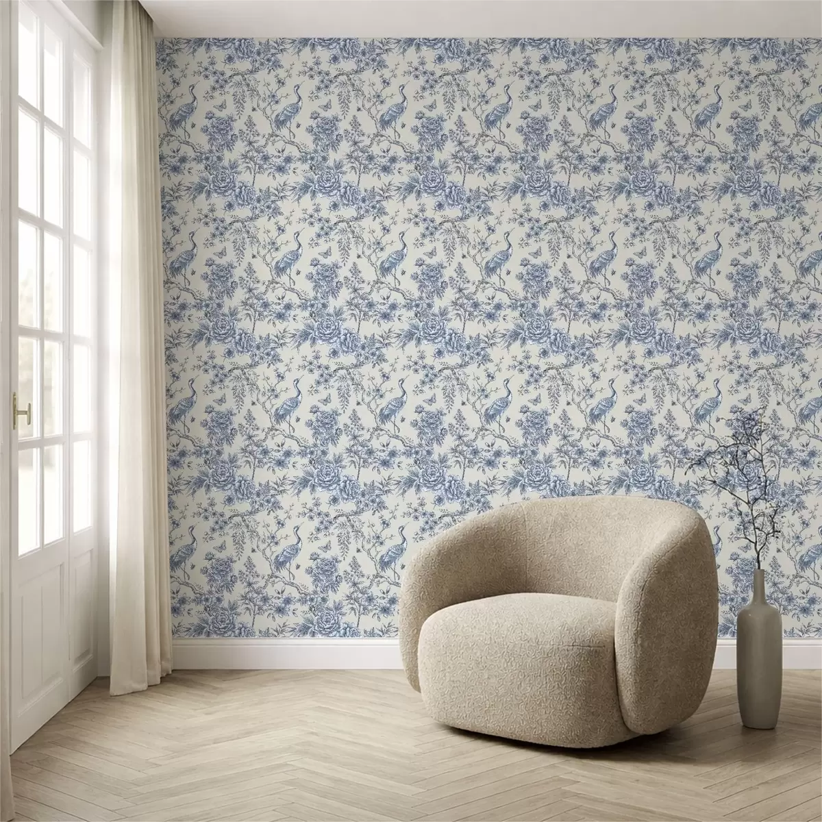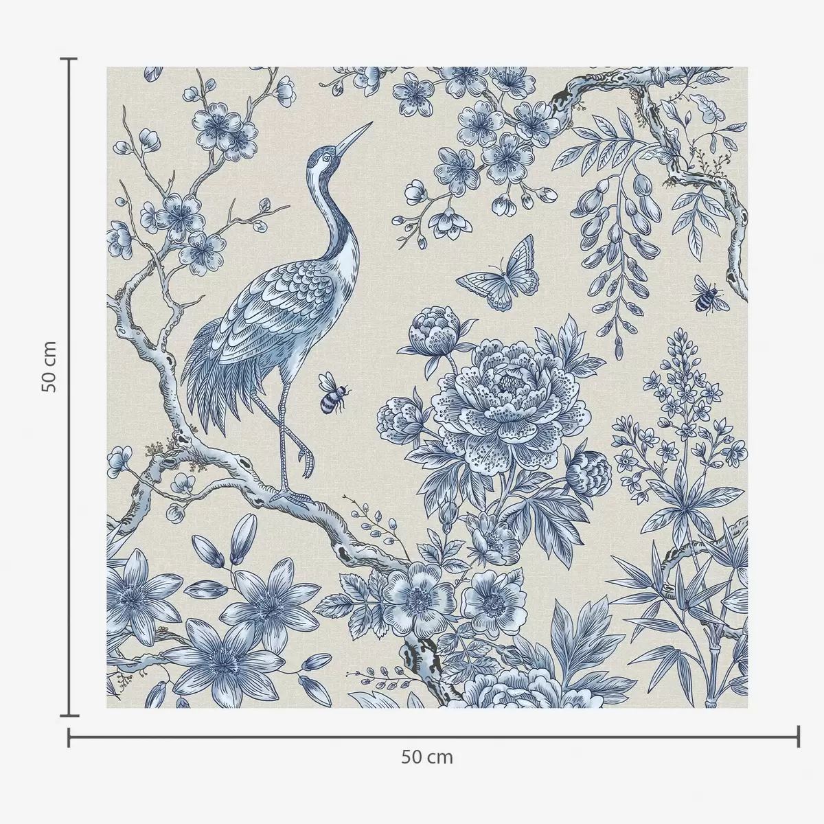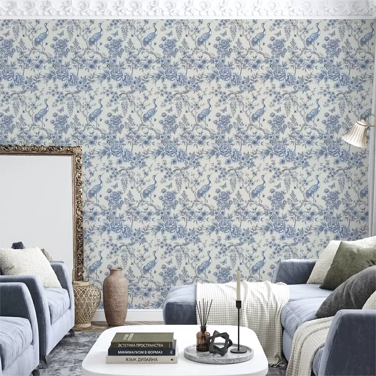 Tapeet Sinine lilleornament lindude ja okstega Nr. a01132