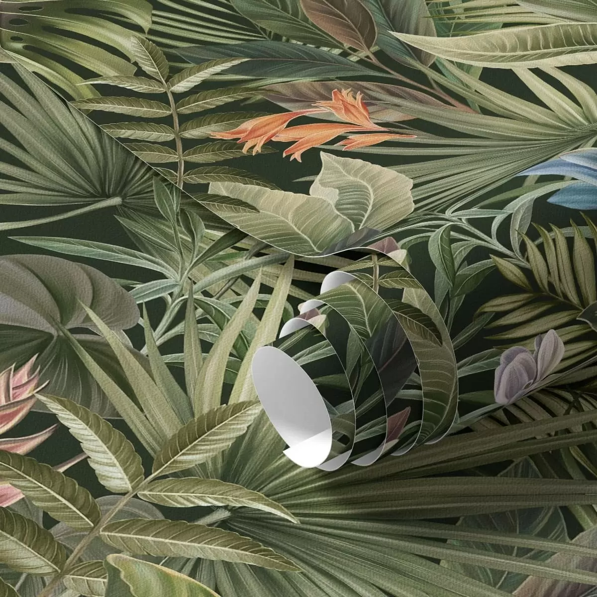 Tapeet Tropilised lehed ja lilled tumedal taustal Nr. a01153