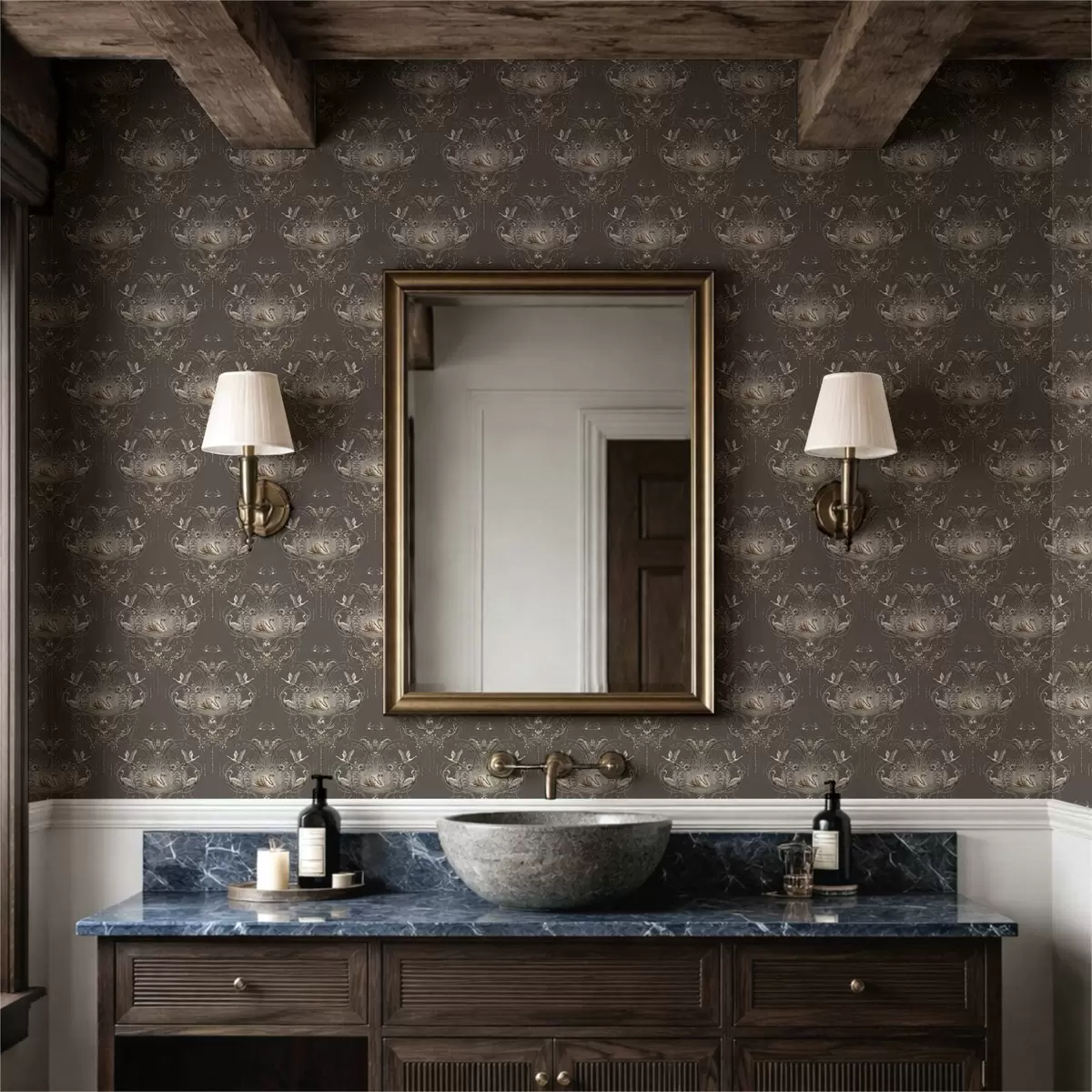 Tapeet Klassikalises stiilis kaunistus luikede ja lindudega Nr. a01161