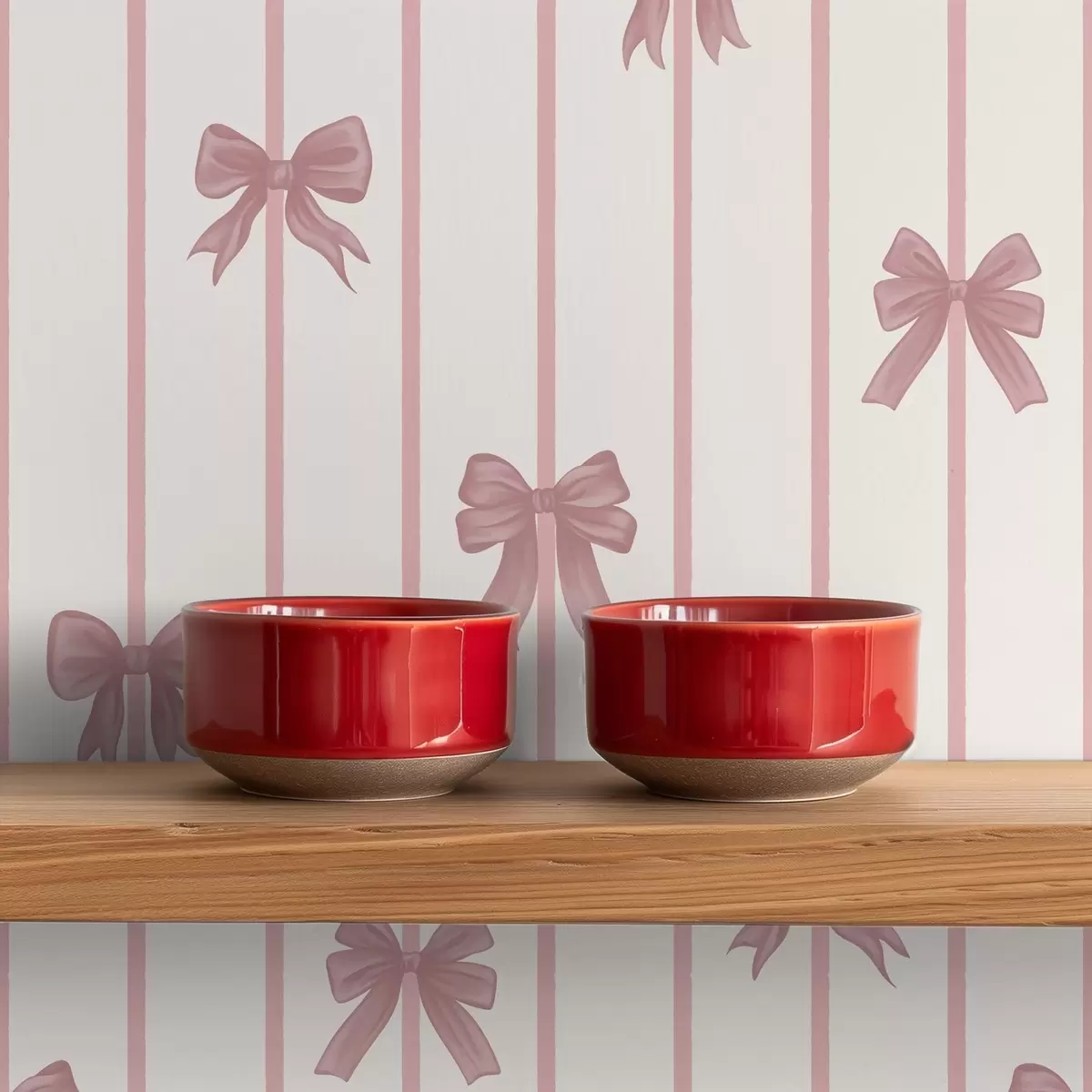 Tapeet Roosad lehvid vertikaalsetel triipudel heledal taustal Nr. a01162