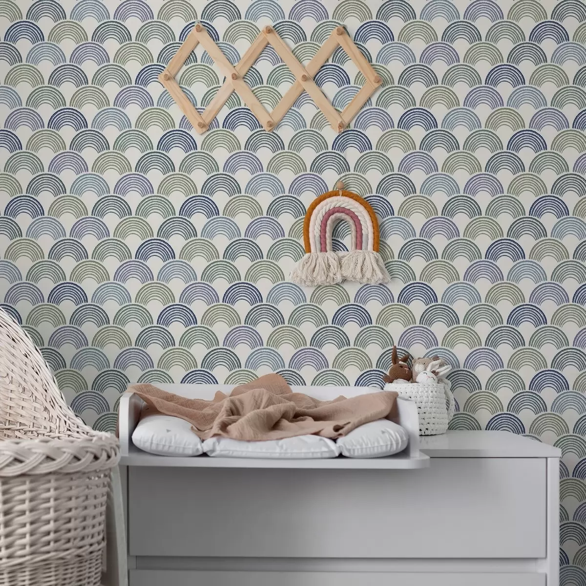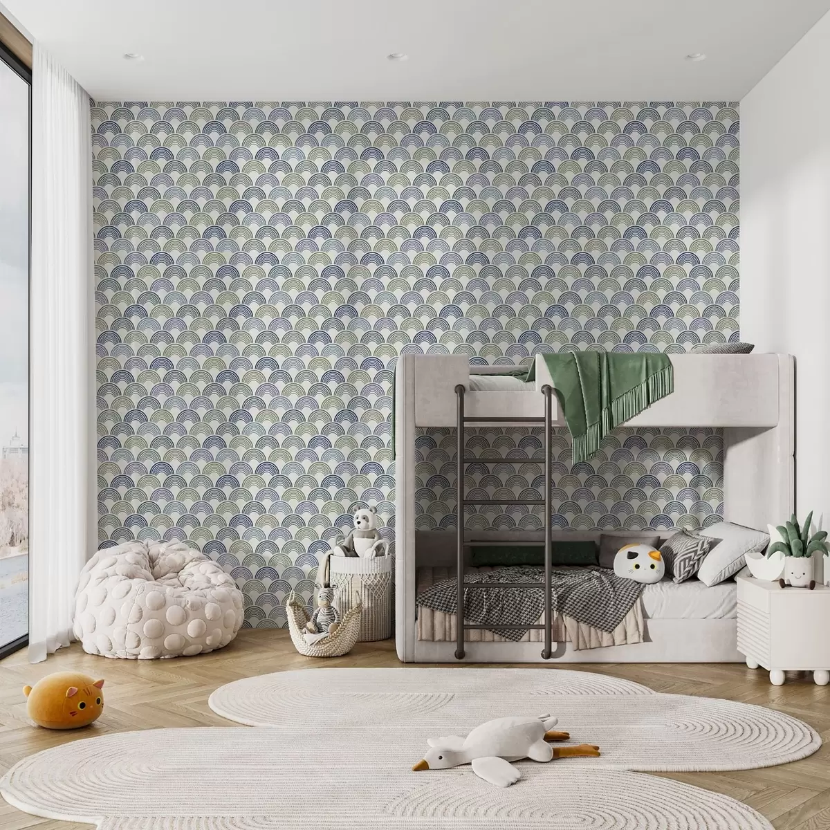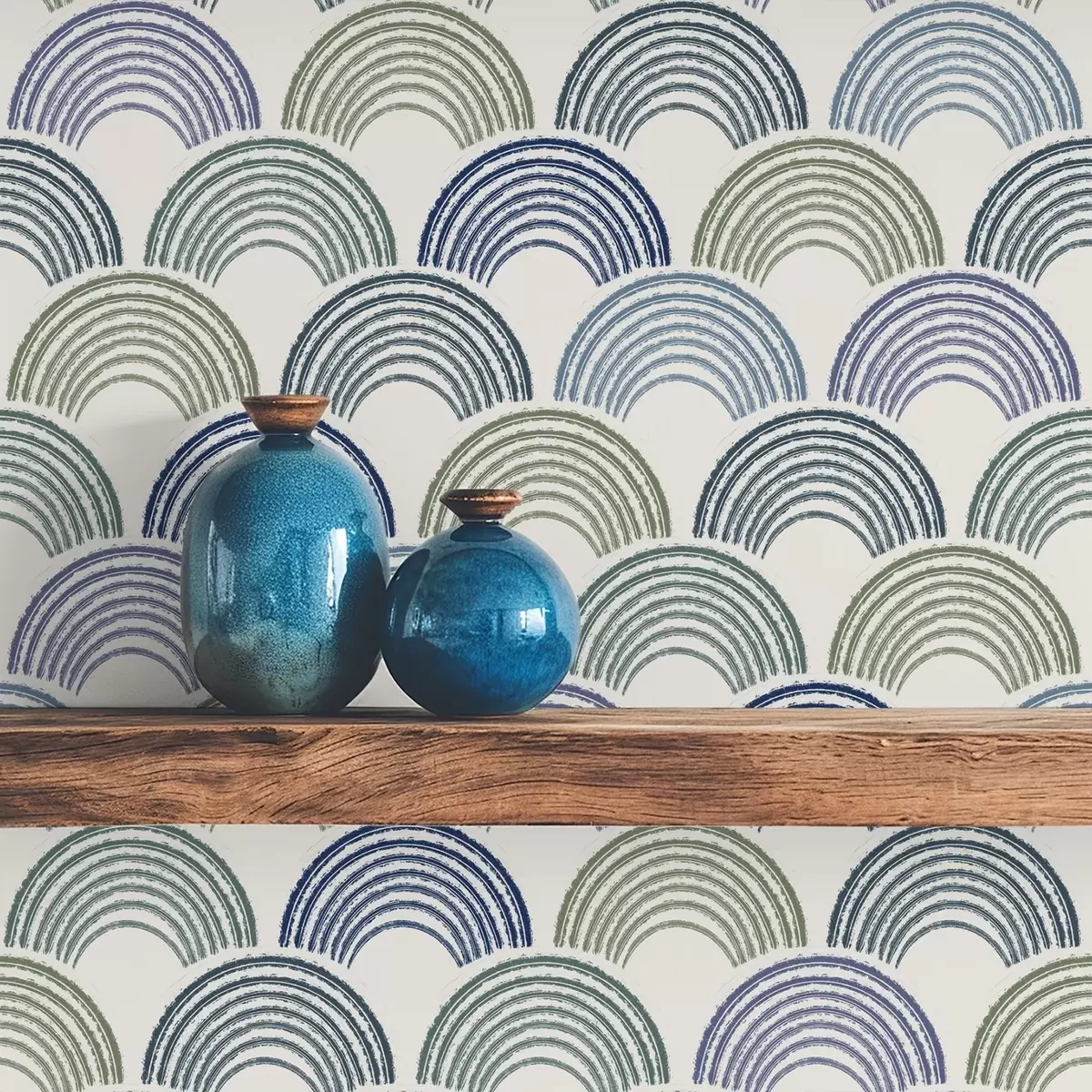 Tapeet Sinised ja rohelised kaared korduvas mustris Nr. a01164v2