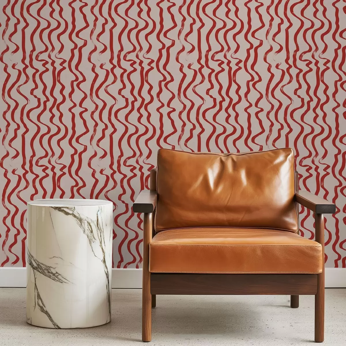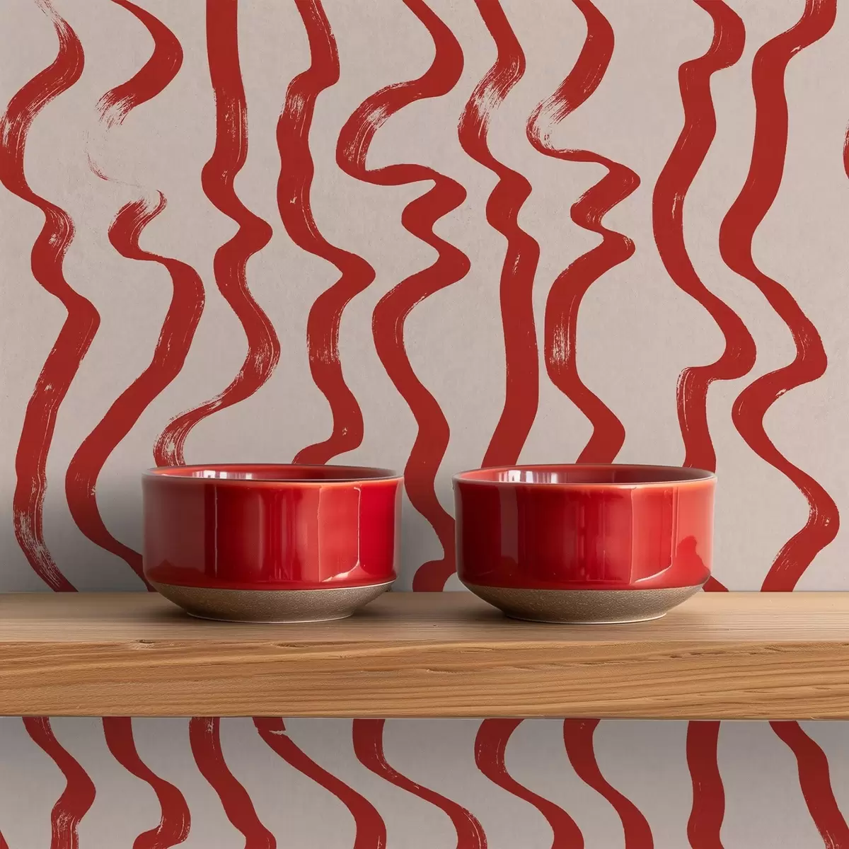 Tapeet Punased lainelised jooned heledal taustal Nr. a01168