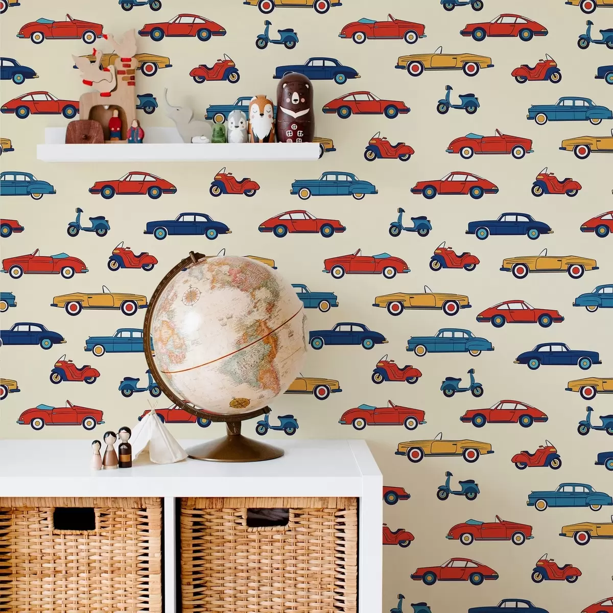 Tapeet Ereval taustal säravad retroautod ja -rollerid Nr. a01172v1