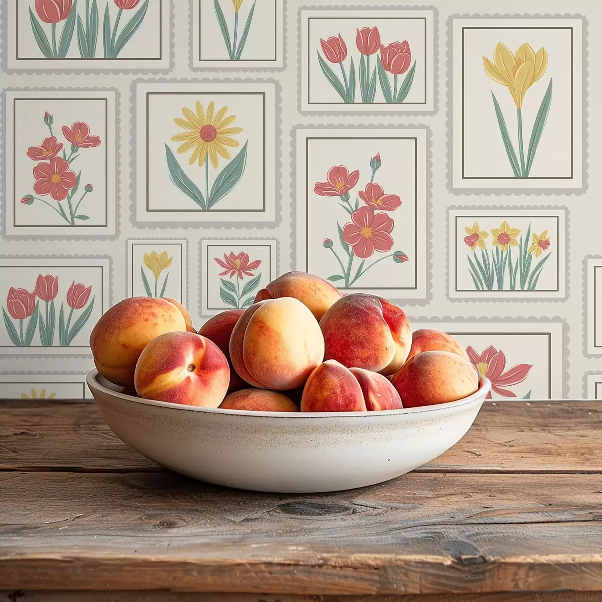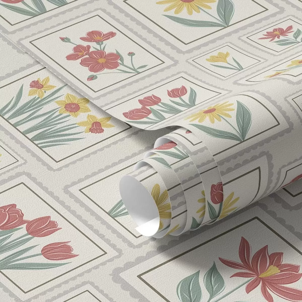 Tapeet Raamitud lilleillustratsioonid heledal taustal Nr. a01173v1