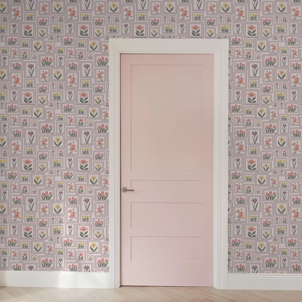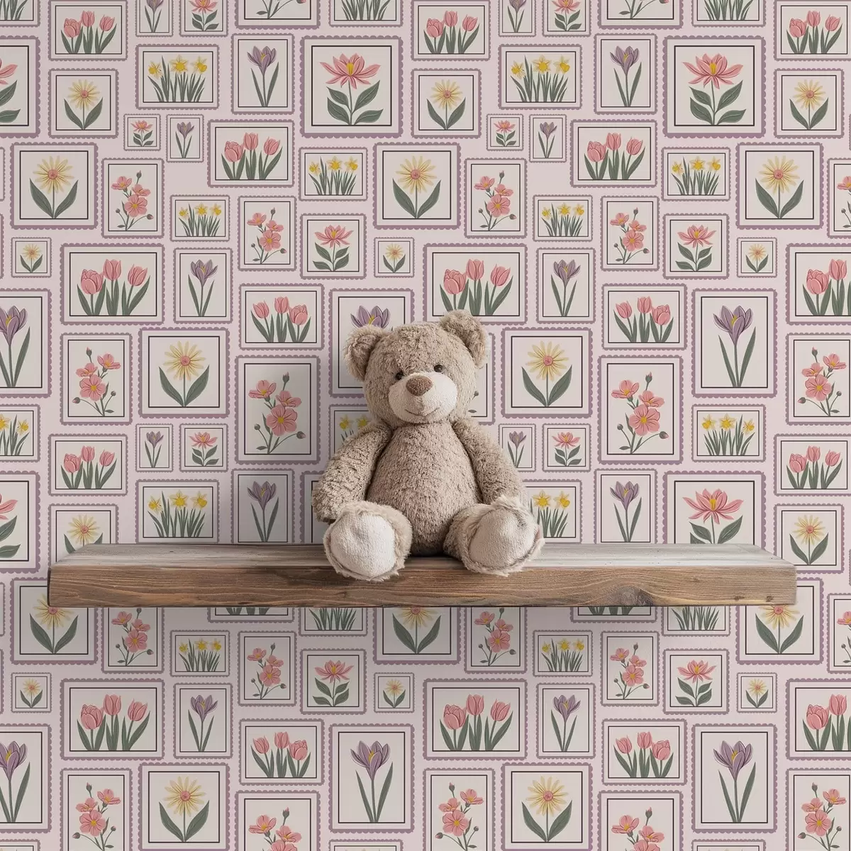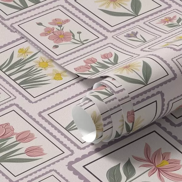 Tapeet Lilla toonides raamitud lilleillustratsioonid Nr. a01173v2