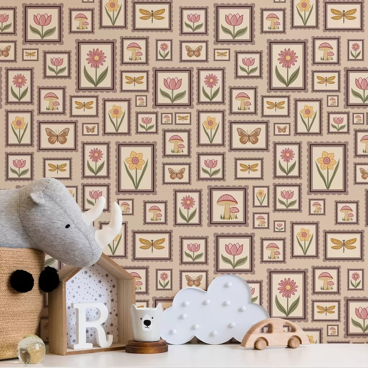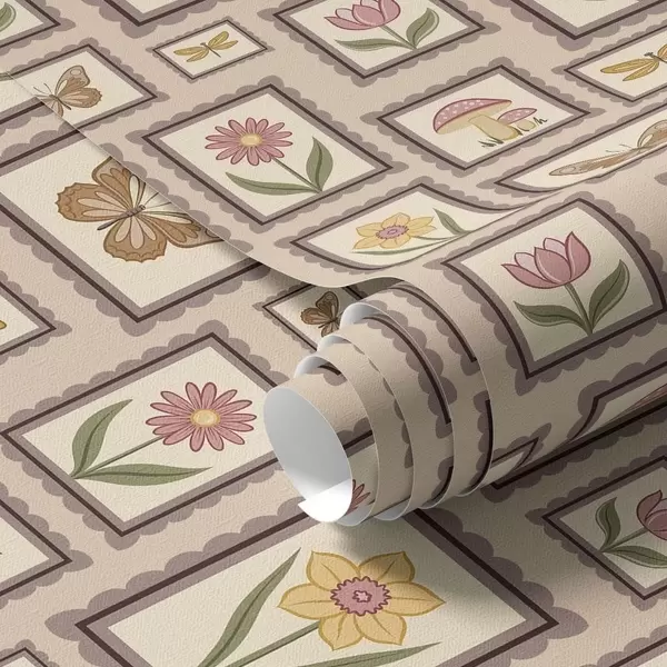Tapeet Raamitud illustratsioonid soojades beežides toonides Nr. a01176v2