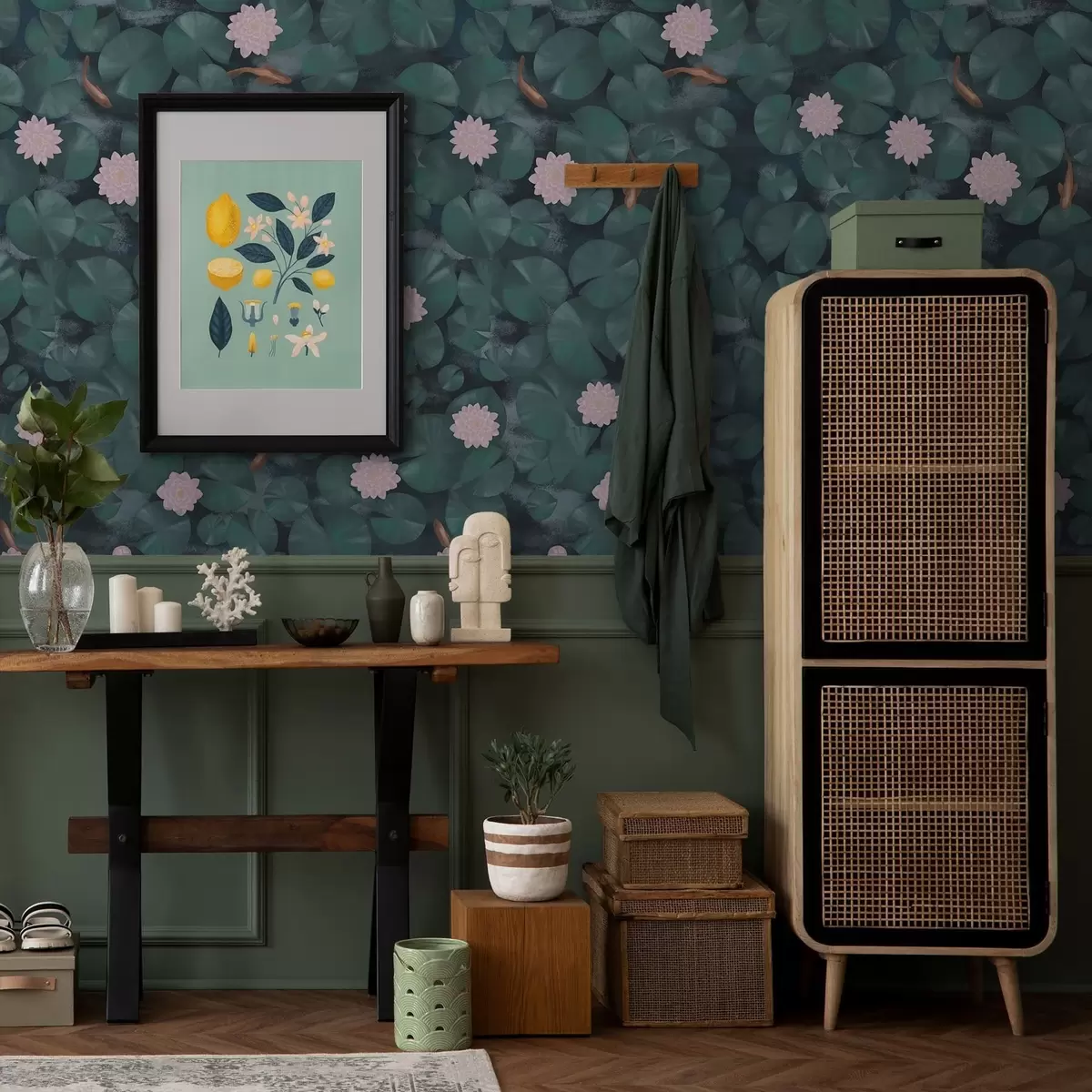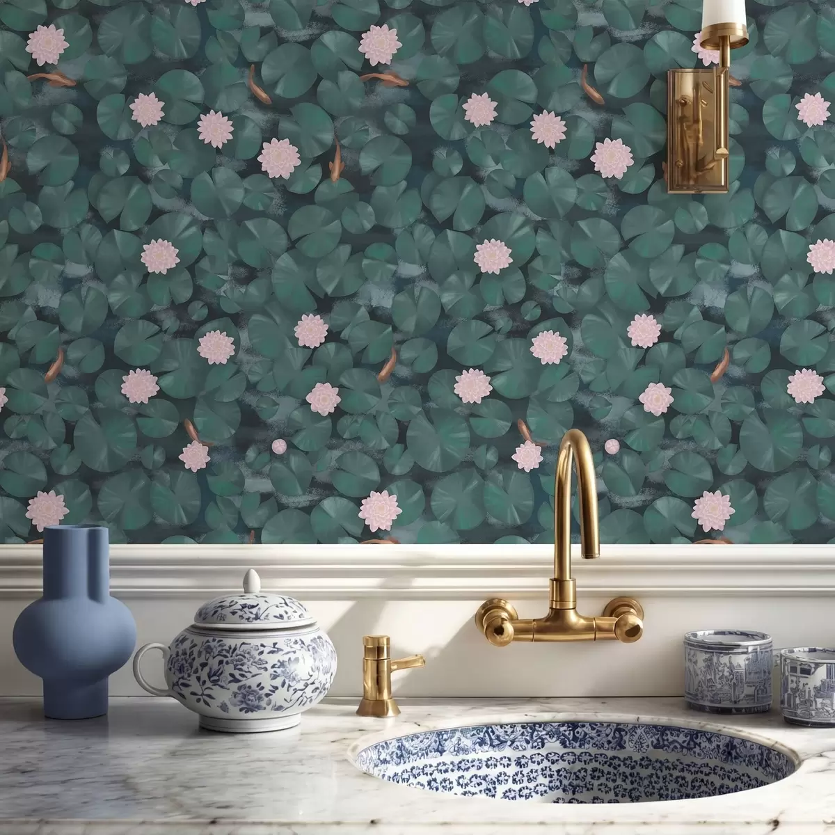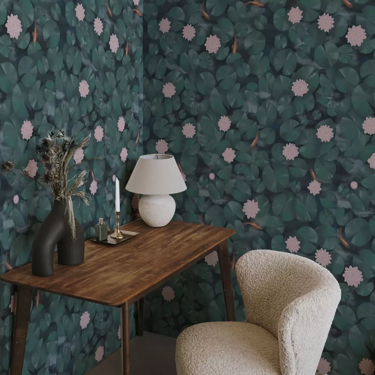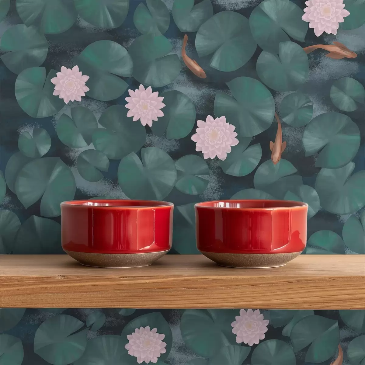 Tapeet Vesililled lilledega ja kaladega tumedal taustal Nr. a01177