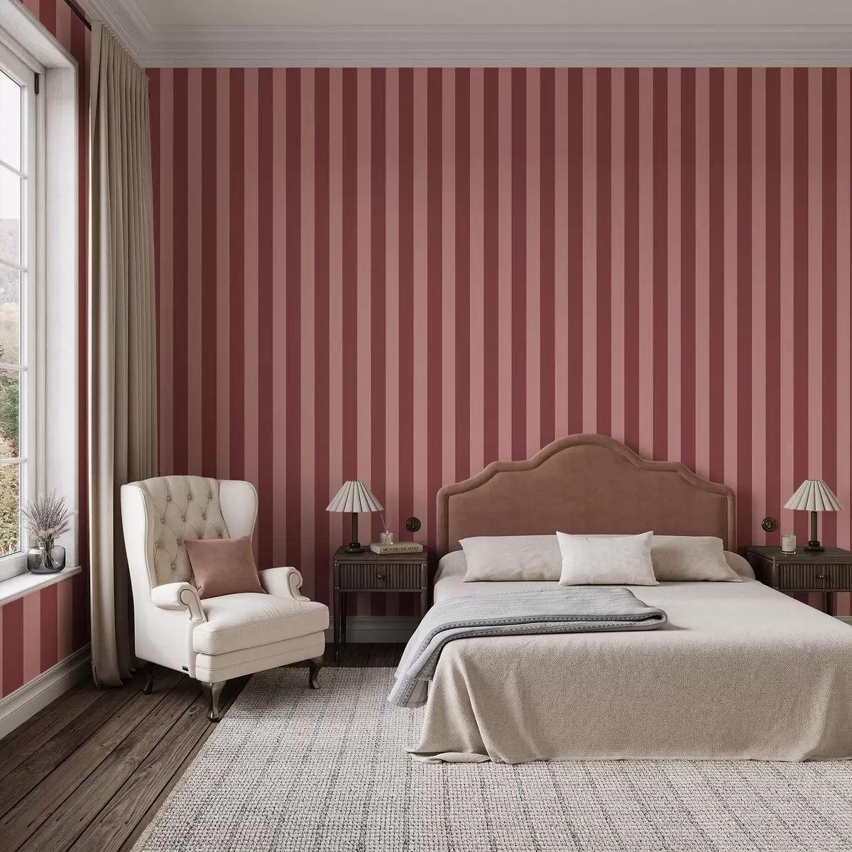 Tapeet Roosad ja heledad vertikaalsed triibud Nr. a01179v3