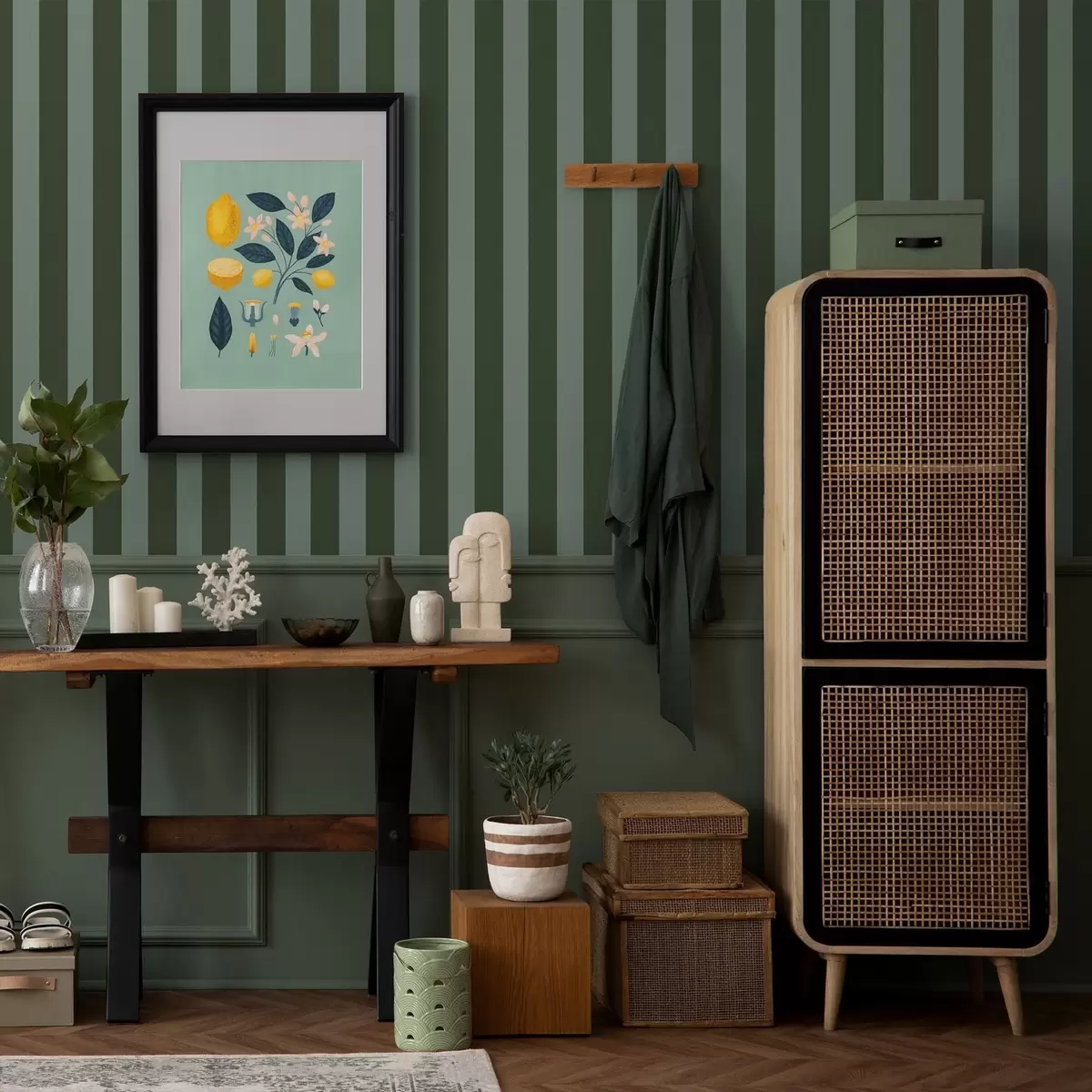Tapeet Tumerohelised ja heledad vertikaalsed triibud Nr. a01179v4