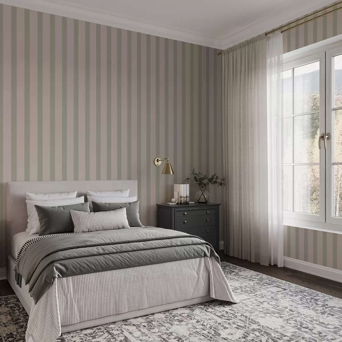 Tapeet Rohelised ja beežid vertikaalsed triibud Nr. a01180