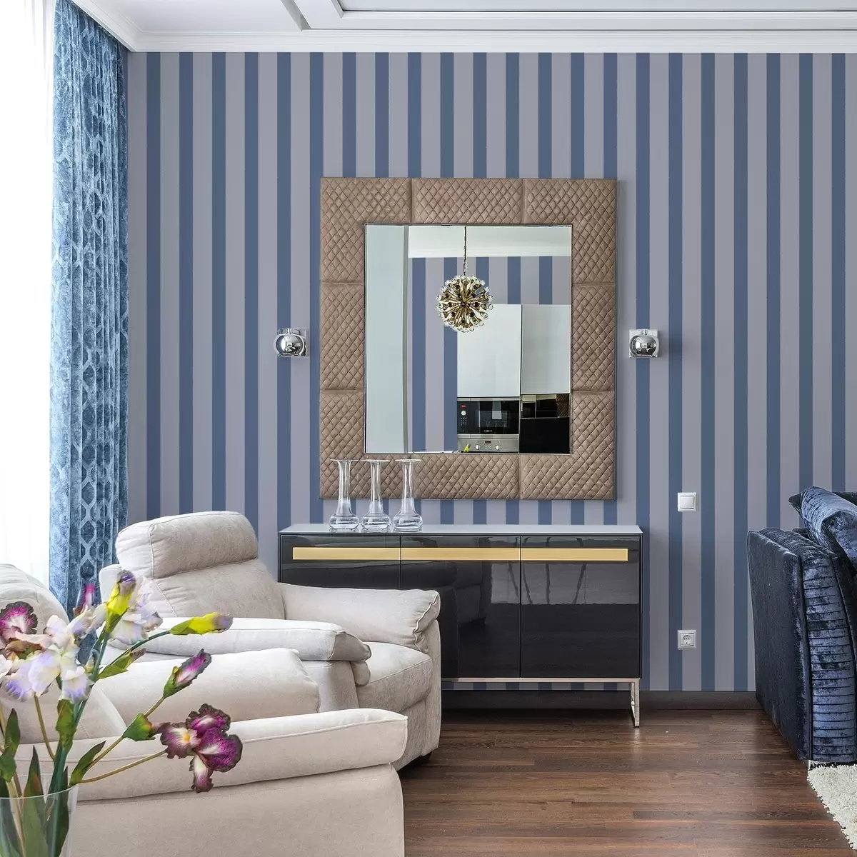 Tapeet Sinised ja hallid vertikaalsed triibud Nr. a01180v1