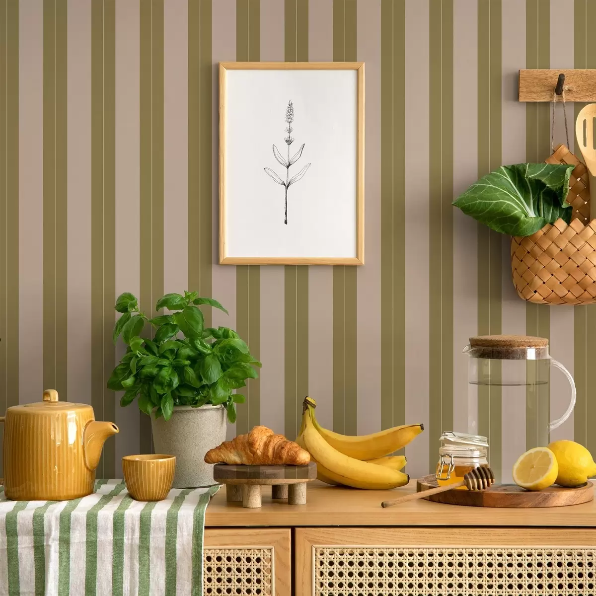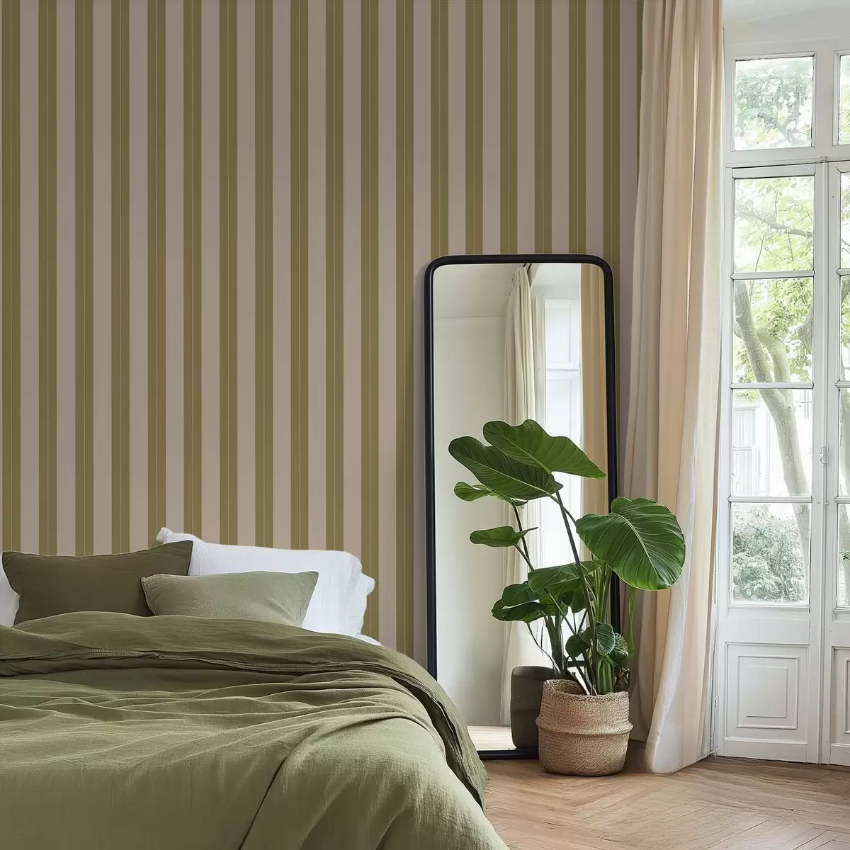 Tapeet Oliivirohelised ja beežid vertikaalsed triibud Nr. a01181v2