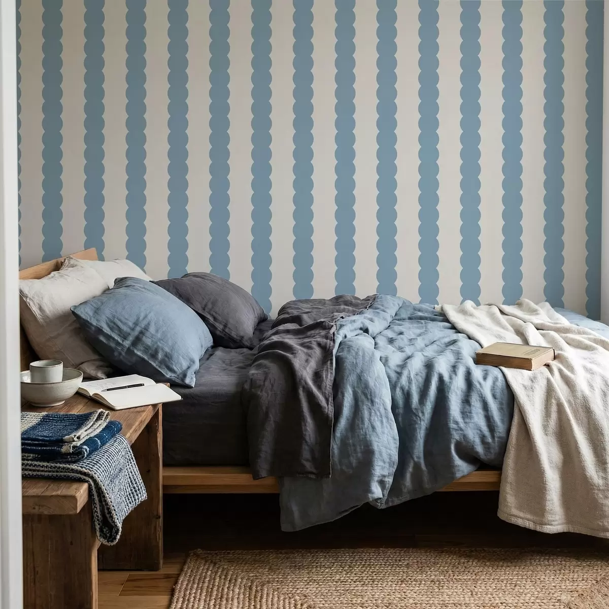 Tapeet Sinised lainelised triibud minimalistlikus stiilis Nr. a01182