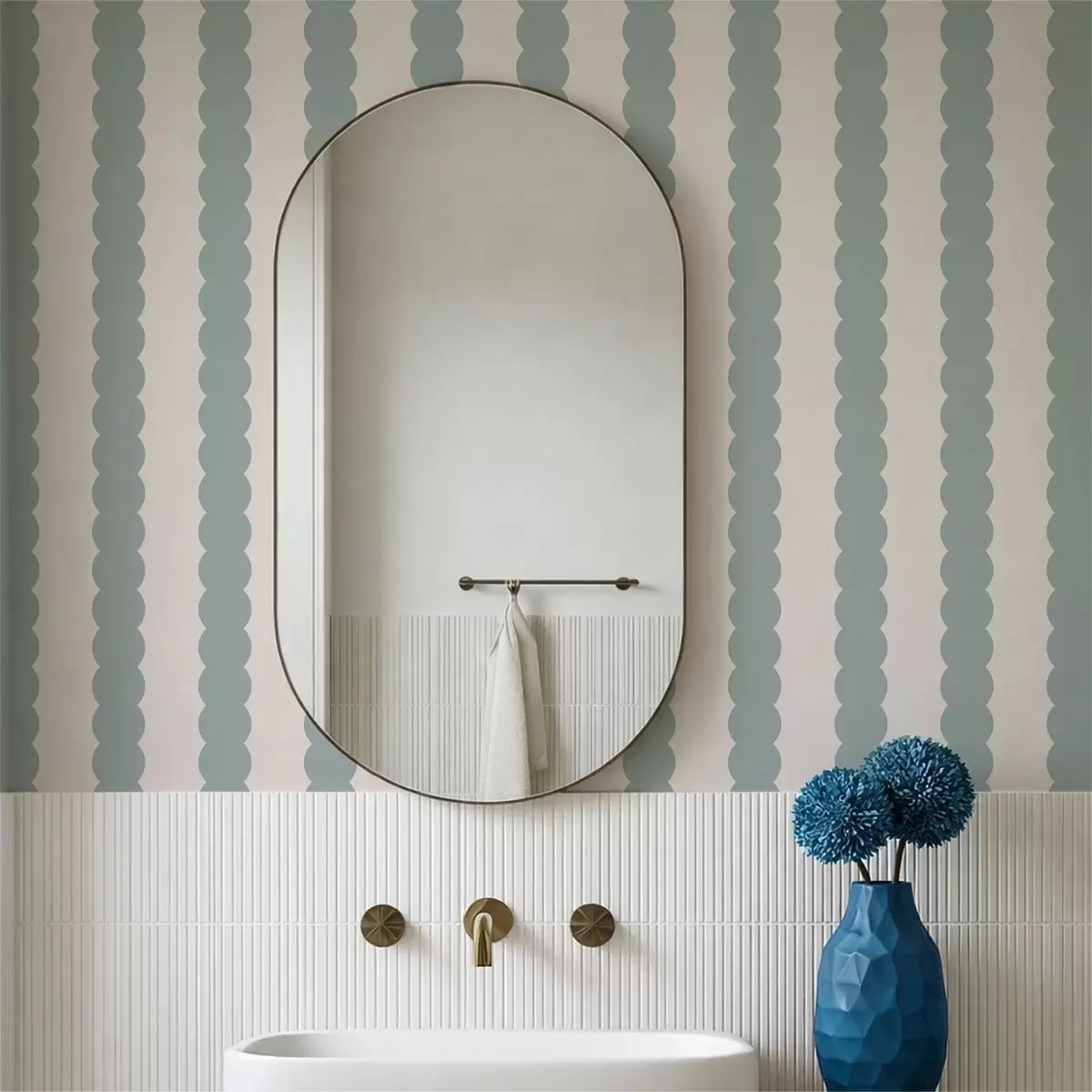 Tapeet Oliivirohelised lainelised triibud minimalistlikus stiilis Nr. a01182v1