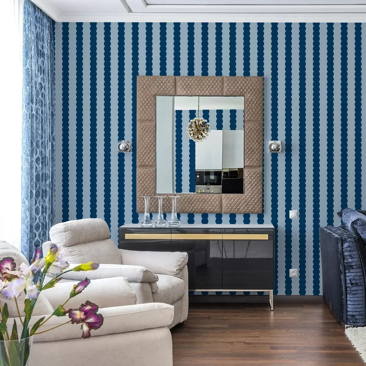 Tapeet Tumedsinised lainelised triibud minimalistlikus stiilis Nr. a01182v3