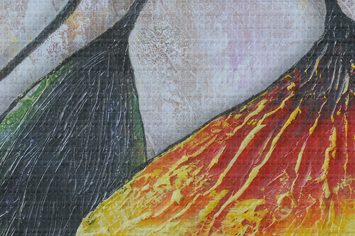 Selle lõuendi peenike niidipunus meenutab professionaalse kunstniku lõuendi pinda.