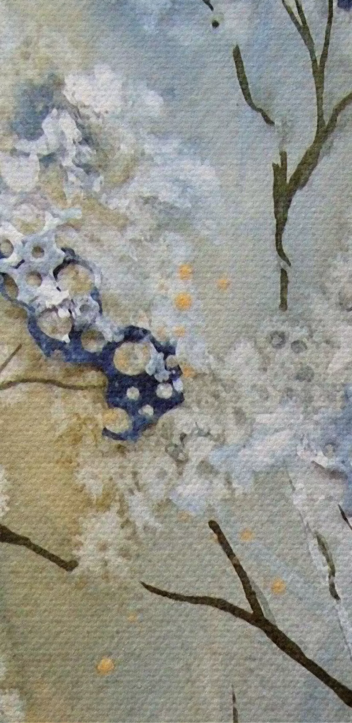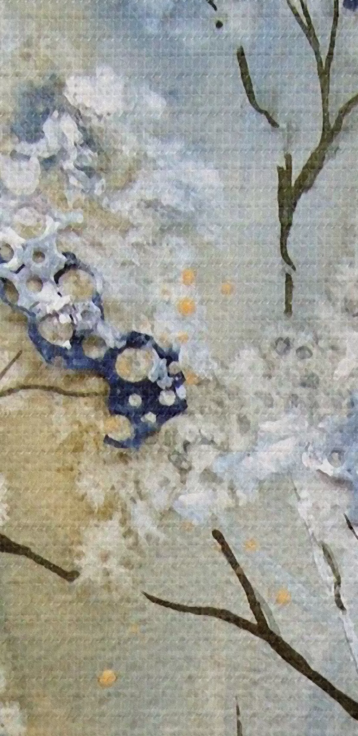 Selle lõuendi peenike niidipunus meenutab professionaalse kunstniku lõuendi pinda.
