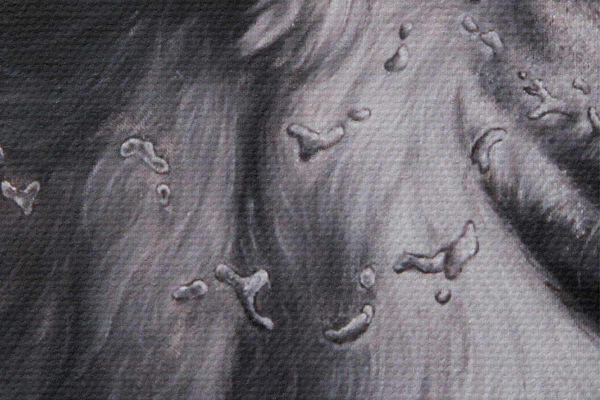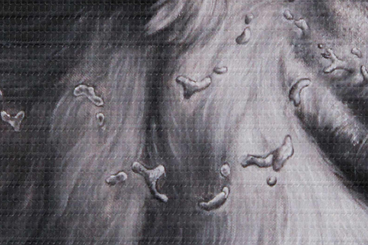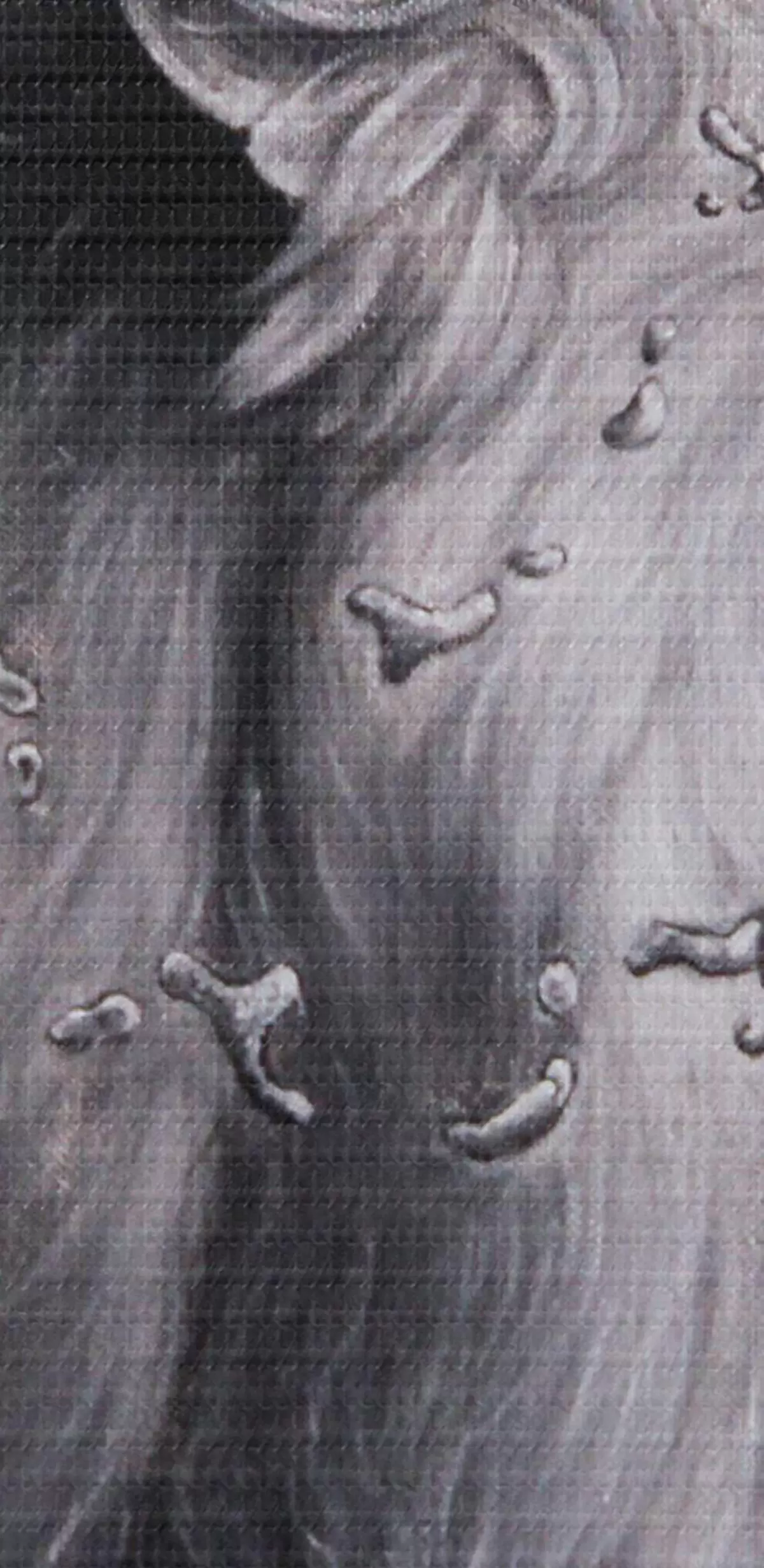 Selle lõuendi peenike niidipunus meenutab professionaalse kunstniku lõuendi pinda.