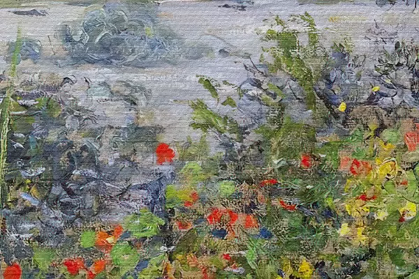 Selle lõuendi peenike niidipunus meenutab professionaalse kunstniku lõuendi pinda.