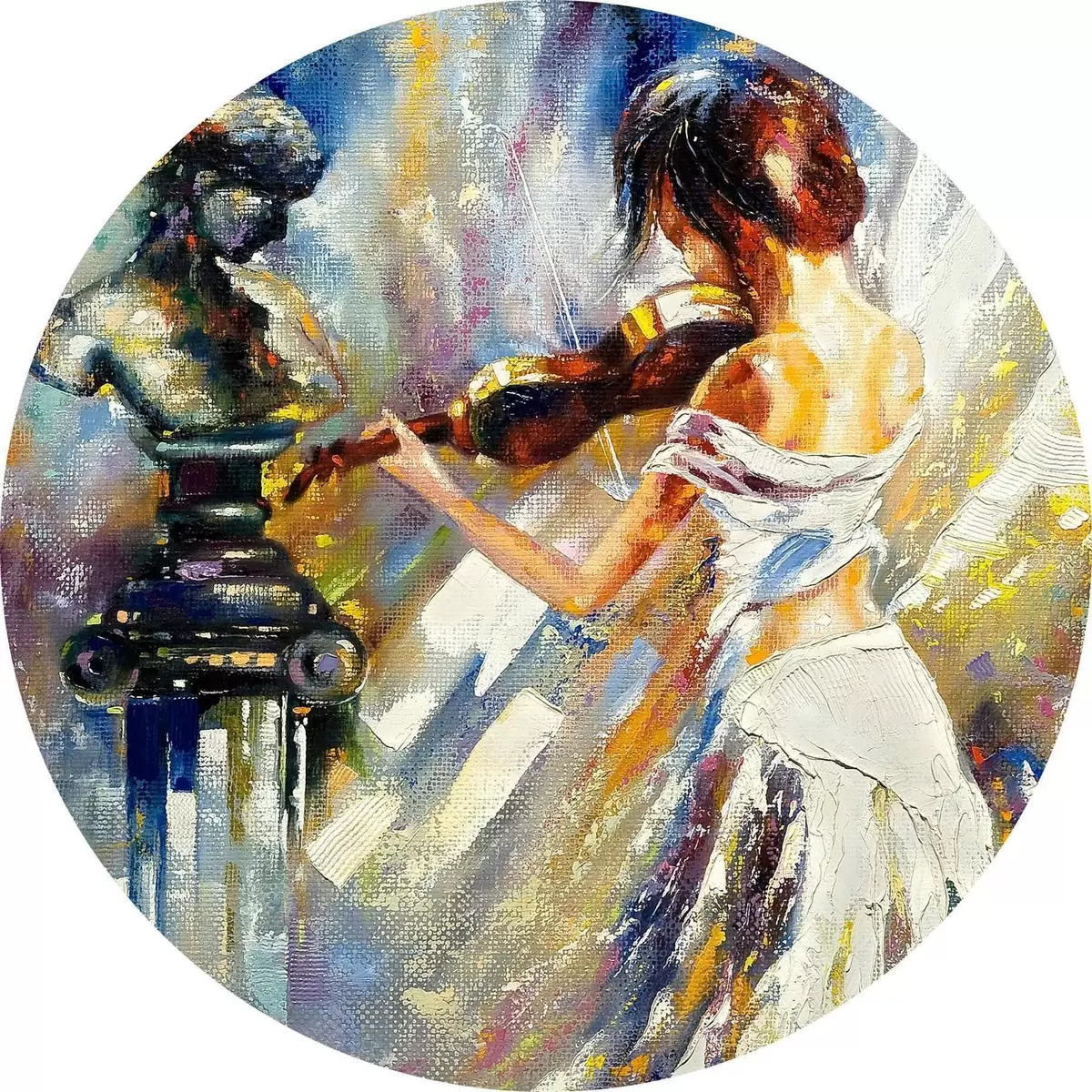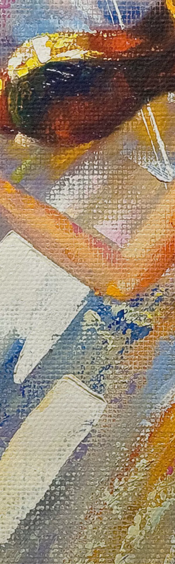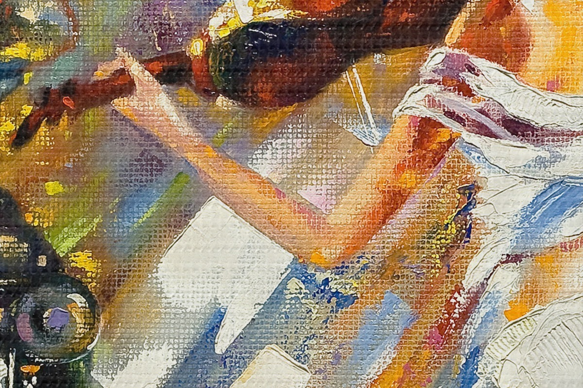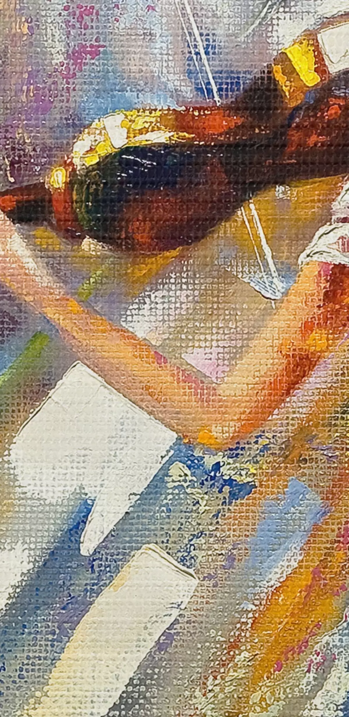 Selle lõuendi peenike niidipunus meenutab professionaalse kunstniku lõuendi pinda.