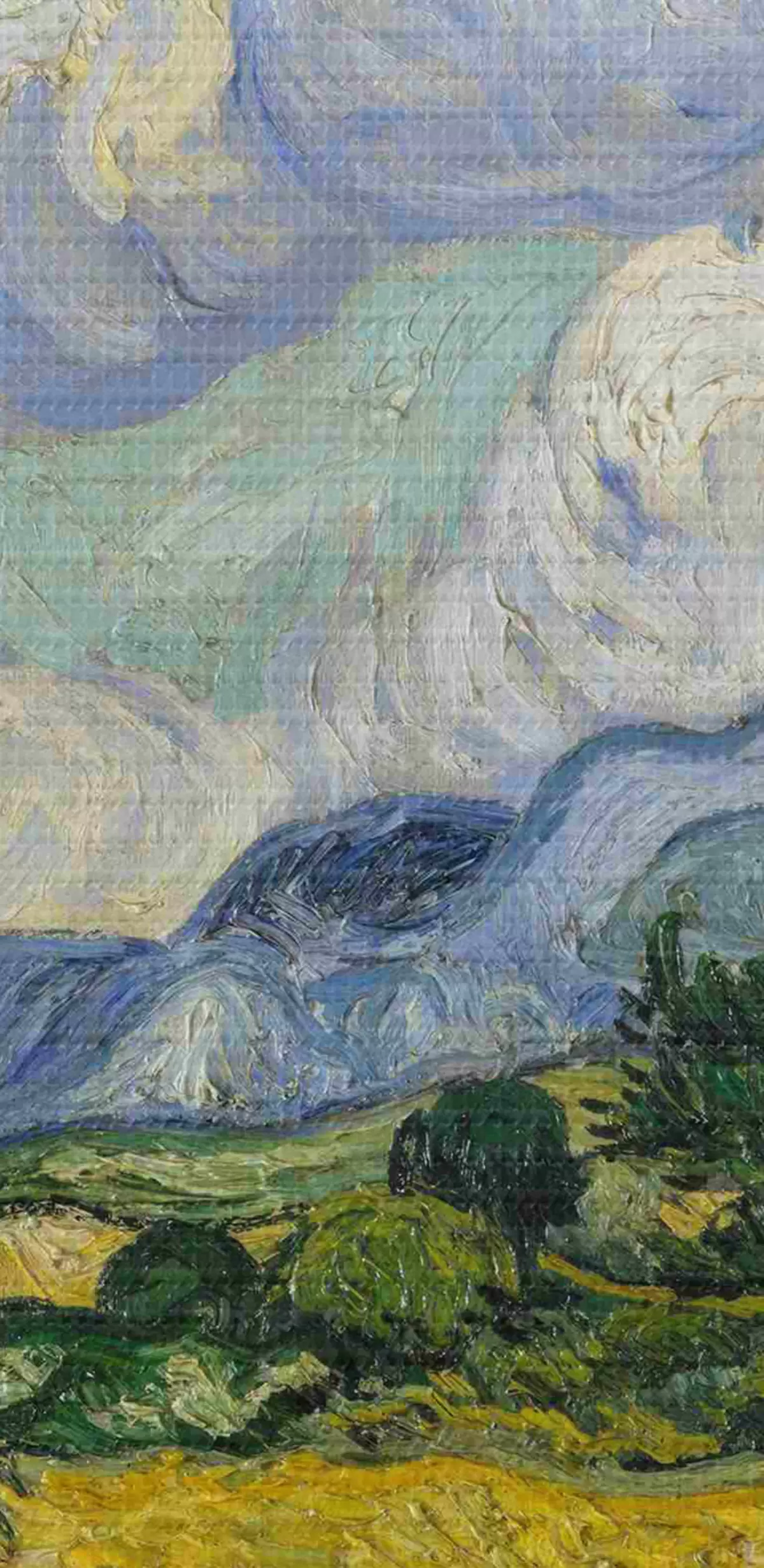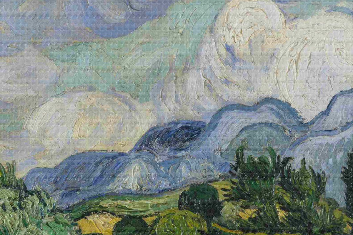 Selle lõuendi peenike niidipunus meenutab professionaalse kunstniku lõuendi pinda.