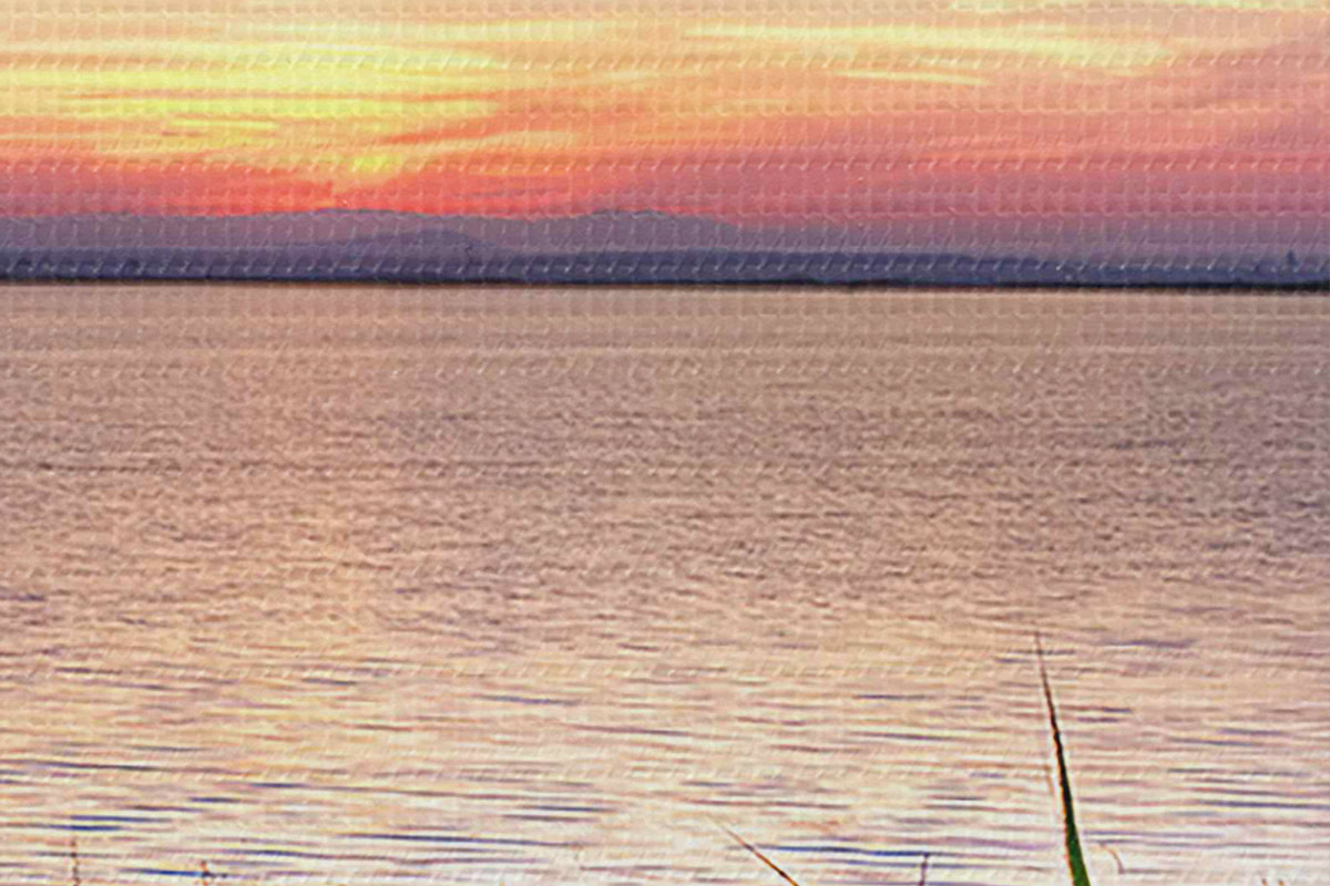 Selle lõuendi peenike niidipunus meenutab professionaalse kunstniku lõuendi pinda.
