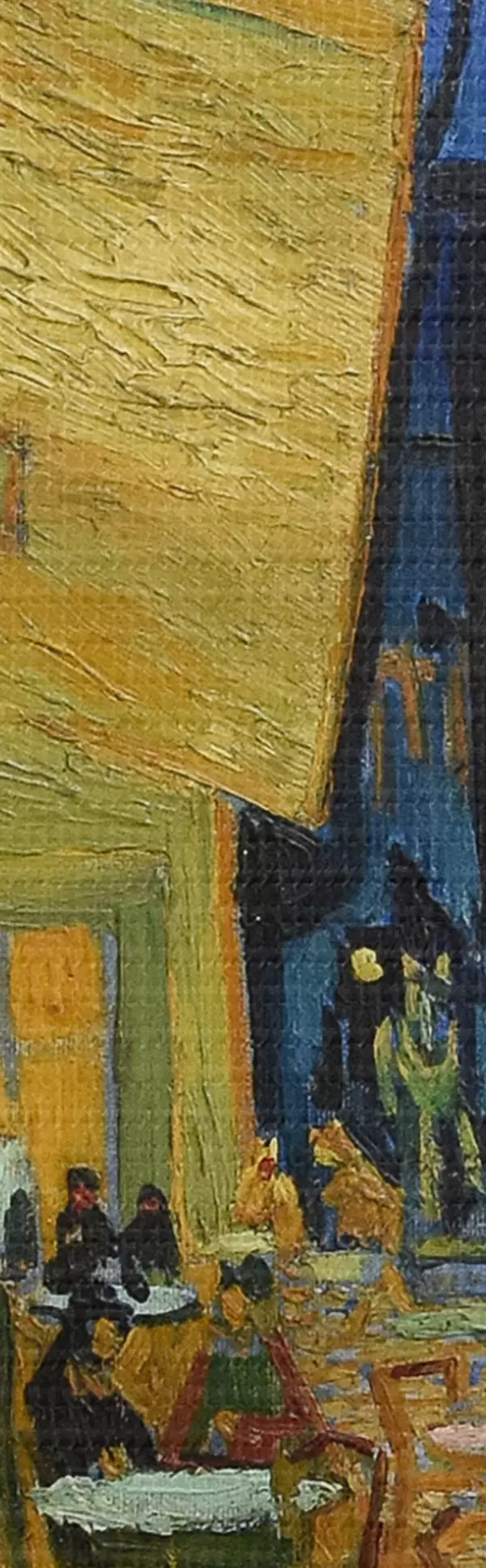 Selle lõuendi peenike niidipunus meenutab professionaalse kunstniku lõuendi pinda.