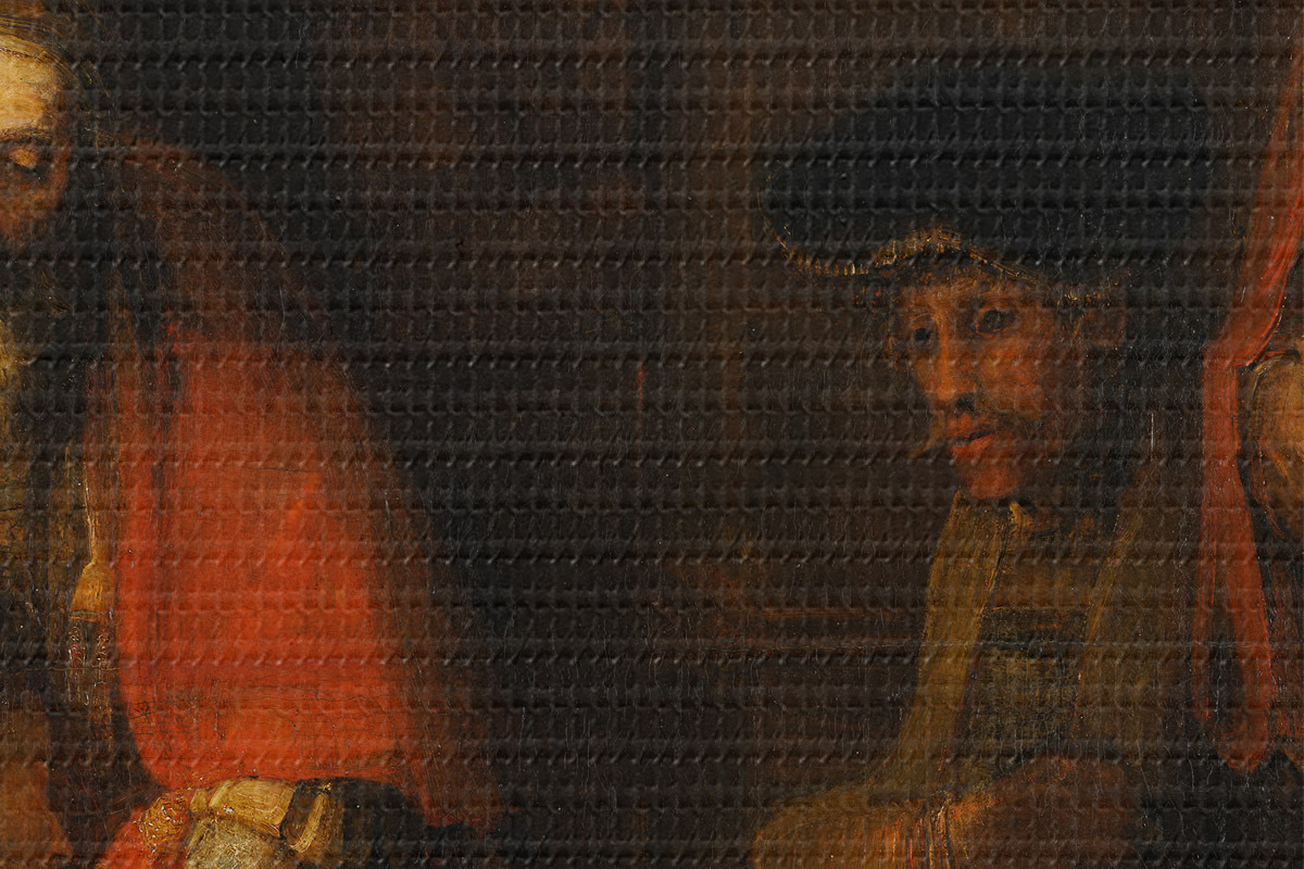 Selle lõuendi peenike niidipunus meenutab professionaalse kunstniku lõuendi pinda.