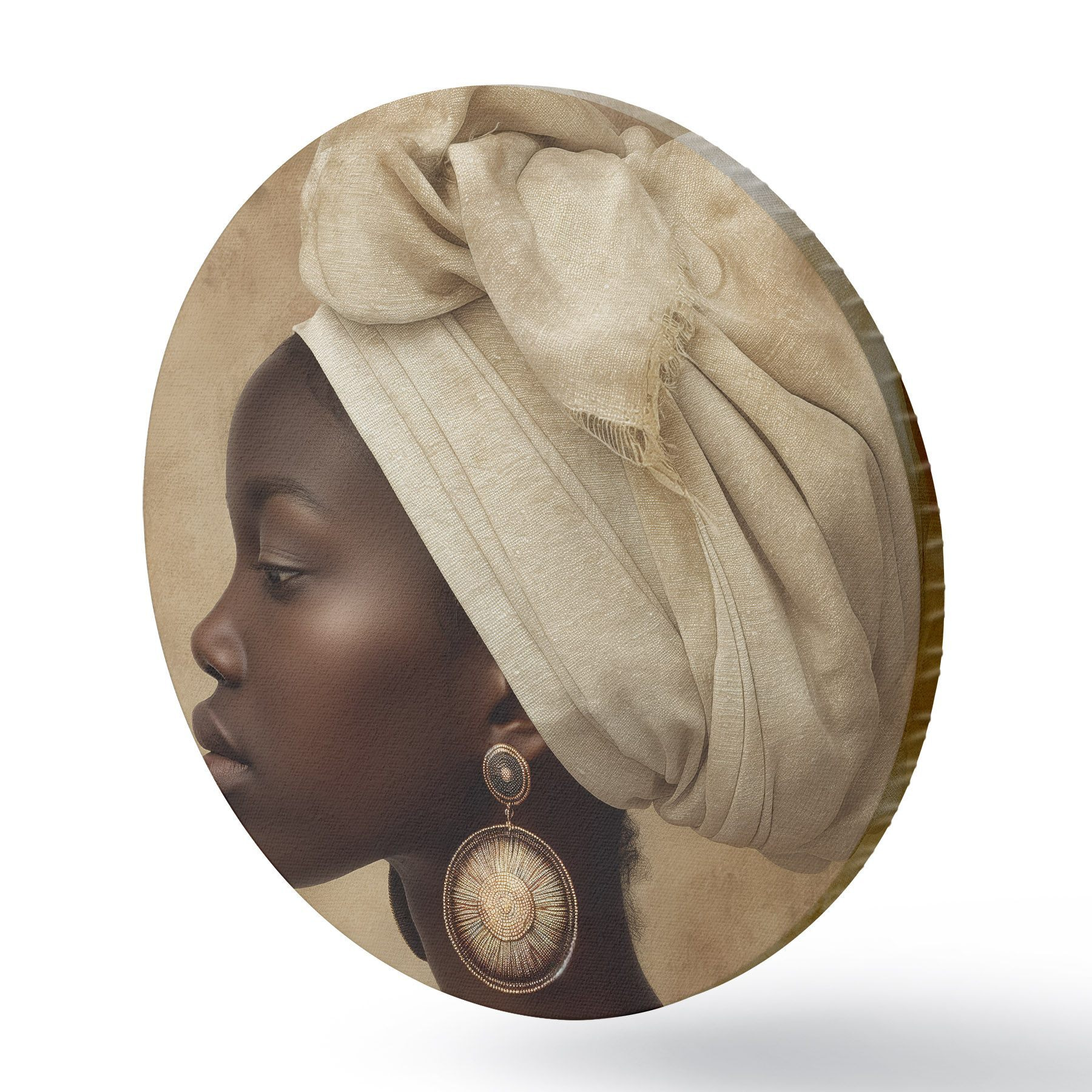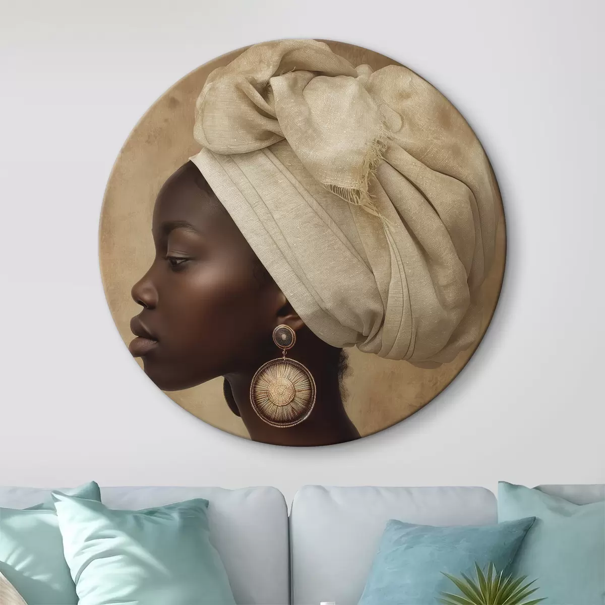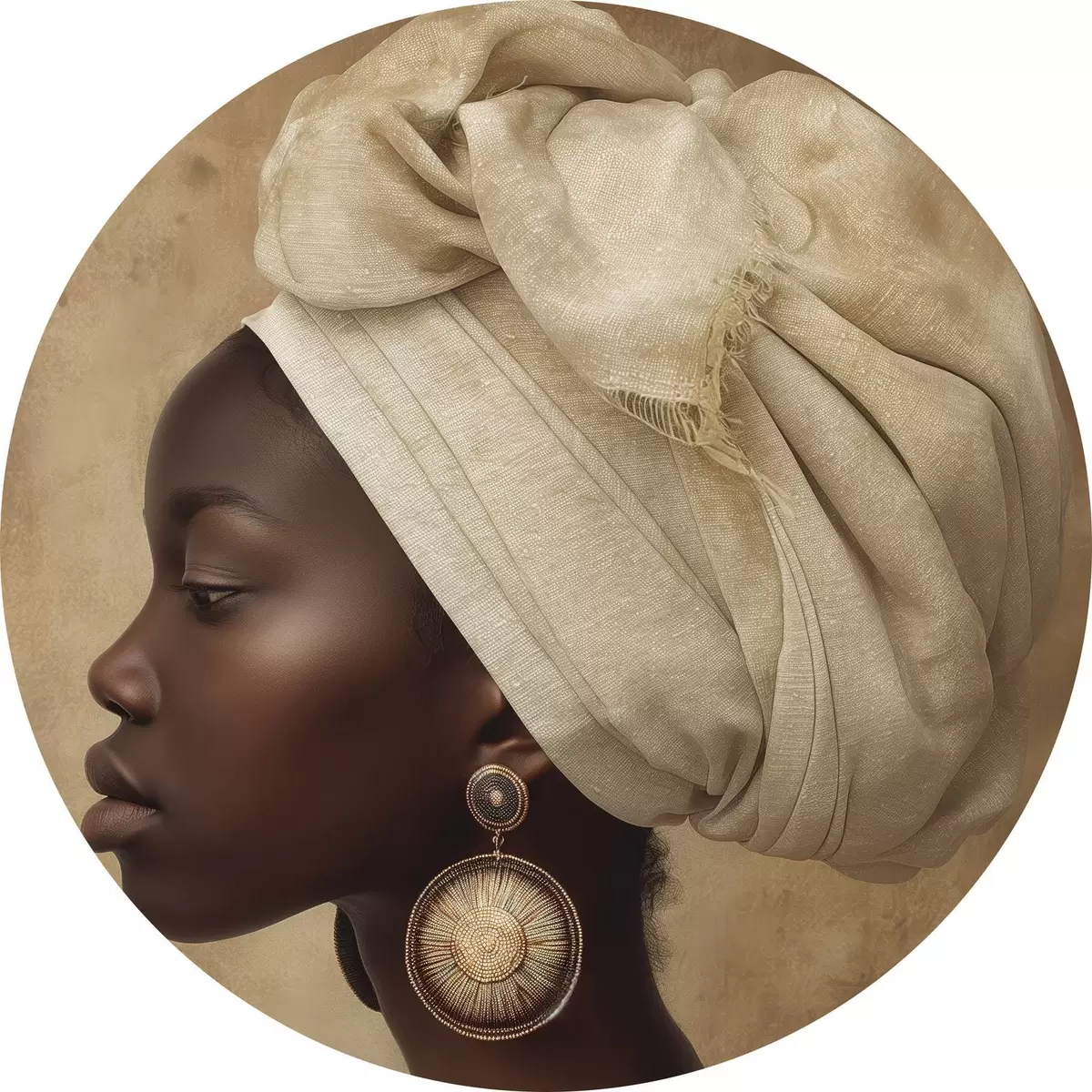 Pilt Aafrika stiilis naise beež portree profiilis suurte kõrvarõngastega Nr r26120