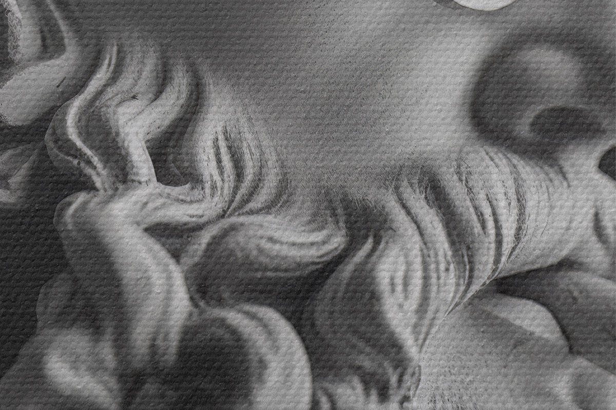 Selle lõuendi peenike niidipunus meenutab professionaalse kunstniku lõuendi pinda.