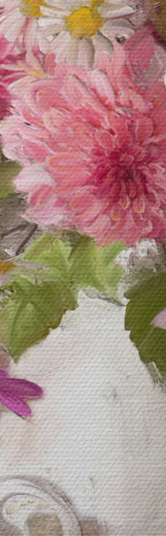 Selle lõuendi peenike niidipunus meenutab professionaalse kunstniku lõuendi pinda.