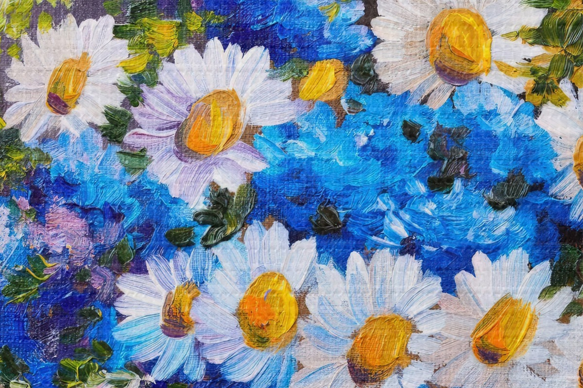 Selle lõuendi peenike niidipunus meenutab professionaalse kunstniku lõuendi pinda.