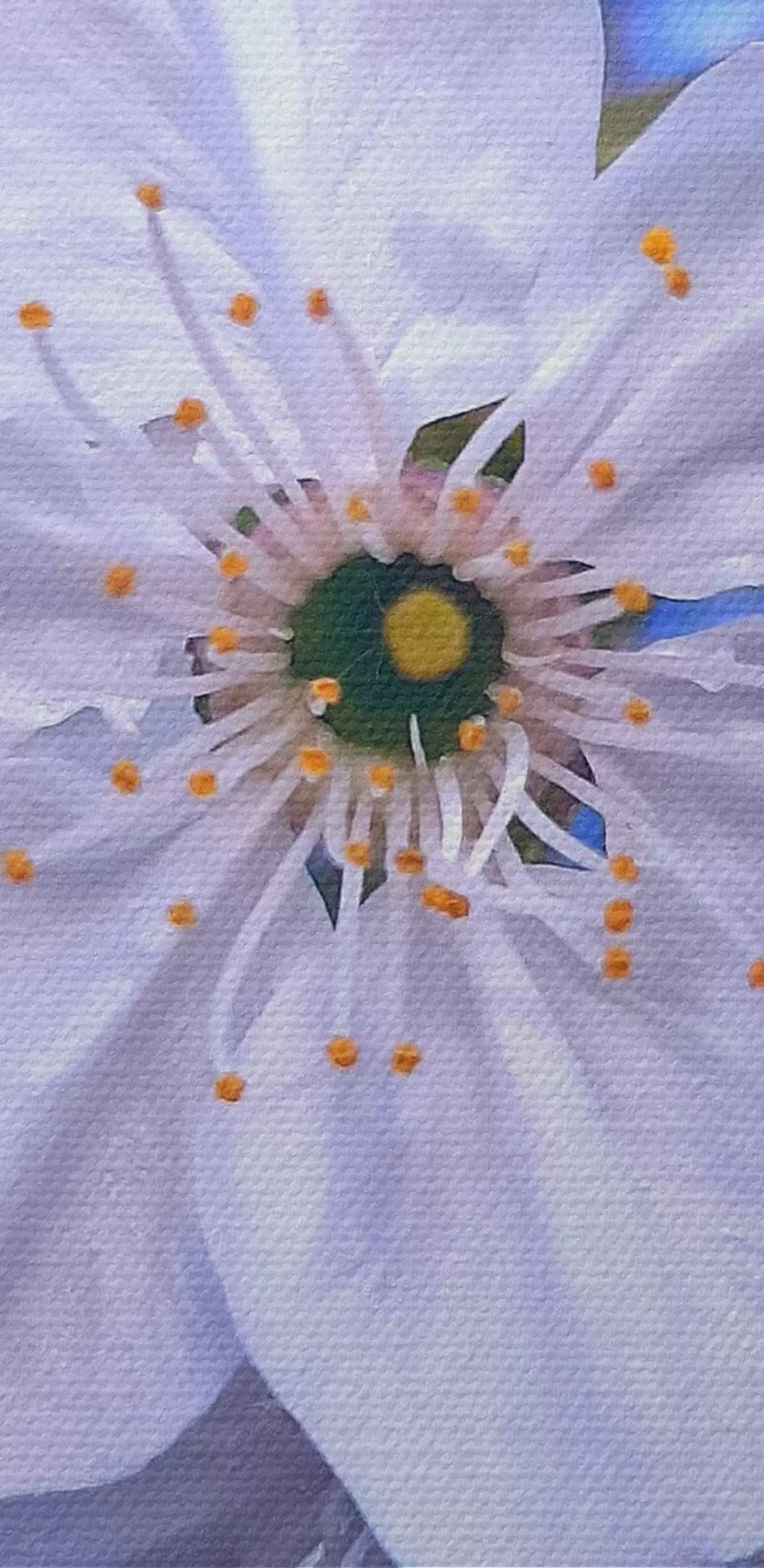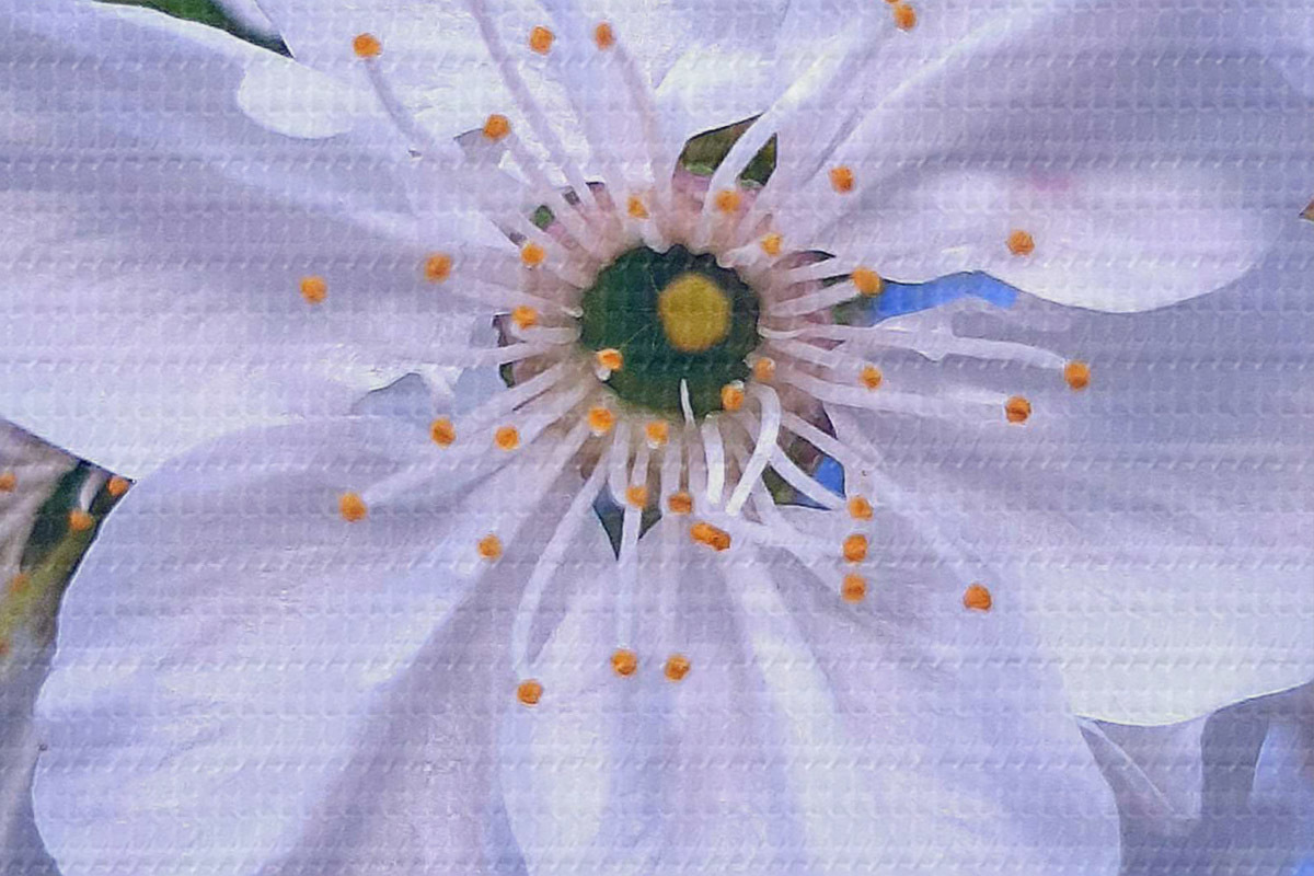 Selle lõuendi peenike niidipunus meenutab professionaalse kunstniku lõuendi pinda.