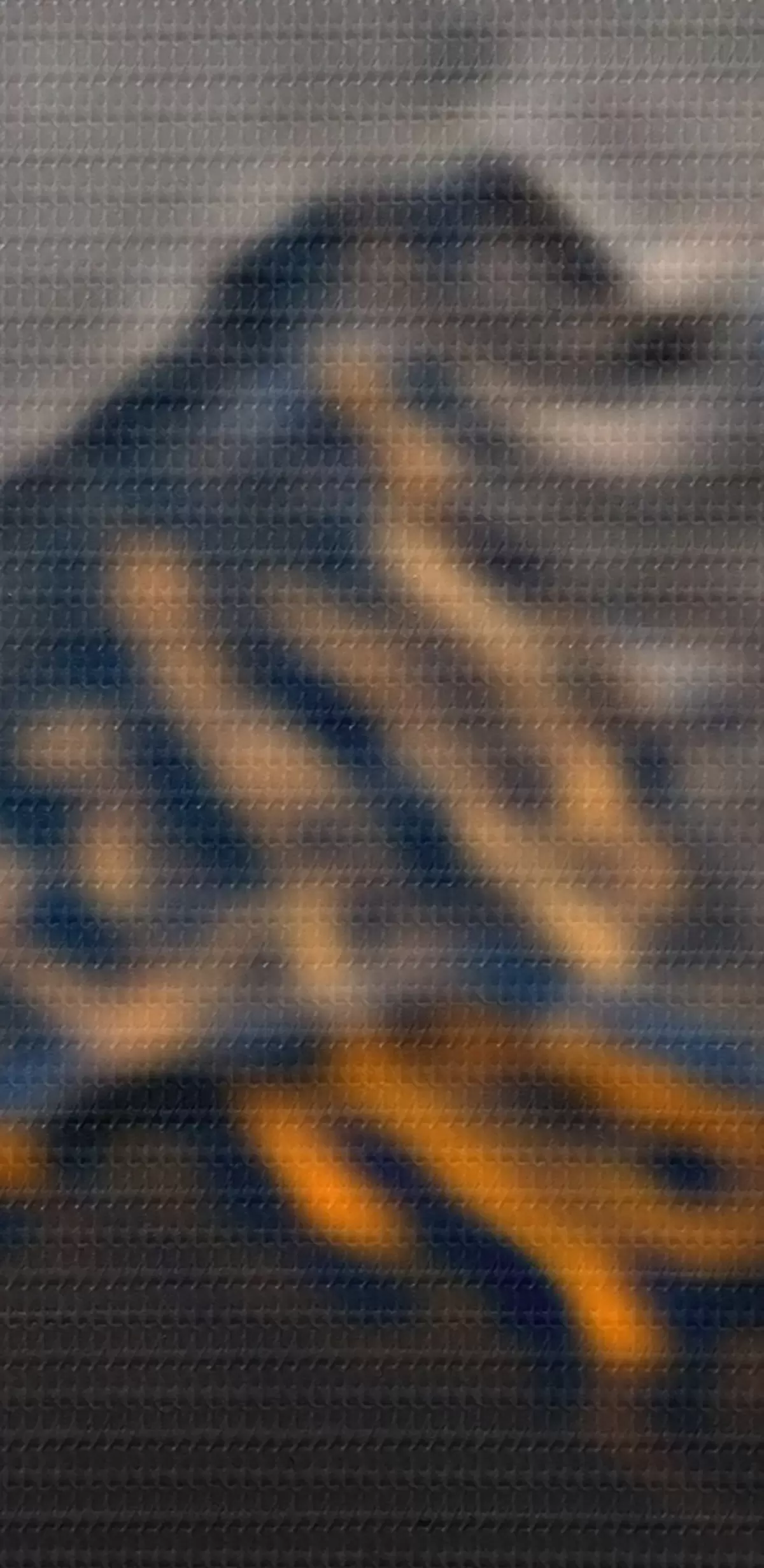 Selle lõuendi peenike niidipunus meenutab professionaalse kunstniku lõuendi pinda.