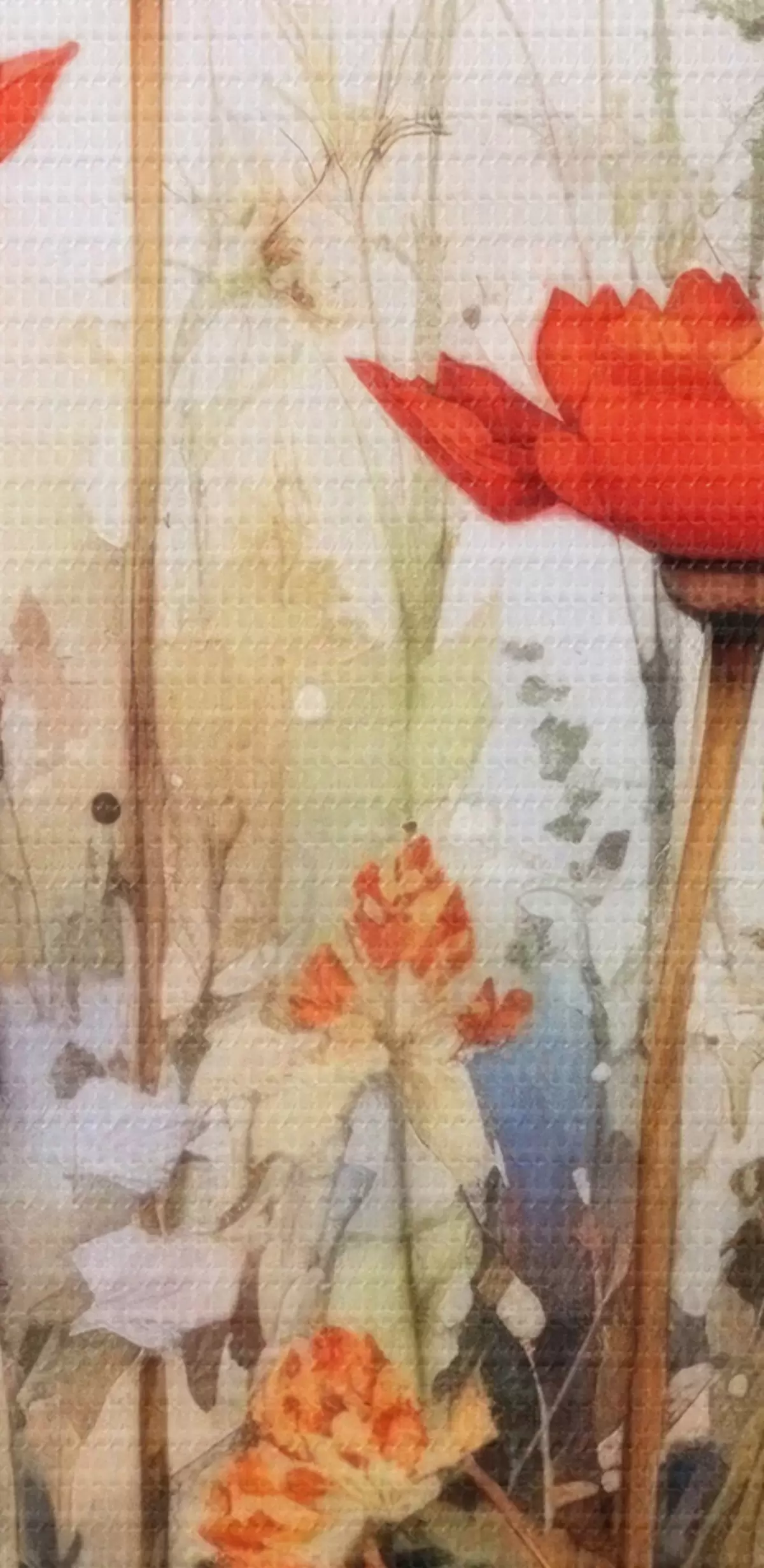 Selle lõuendi peenike niidipunus meenutab professionaalse kunstniku lõuendi pinda.