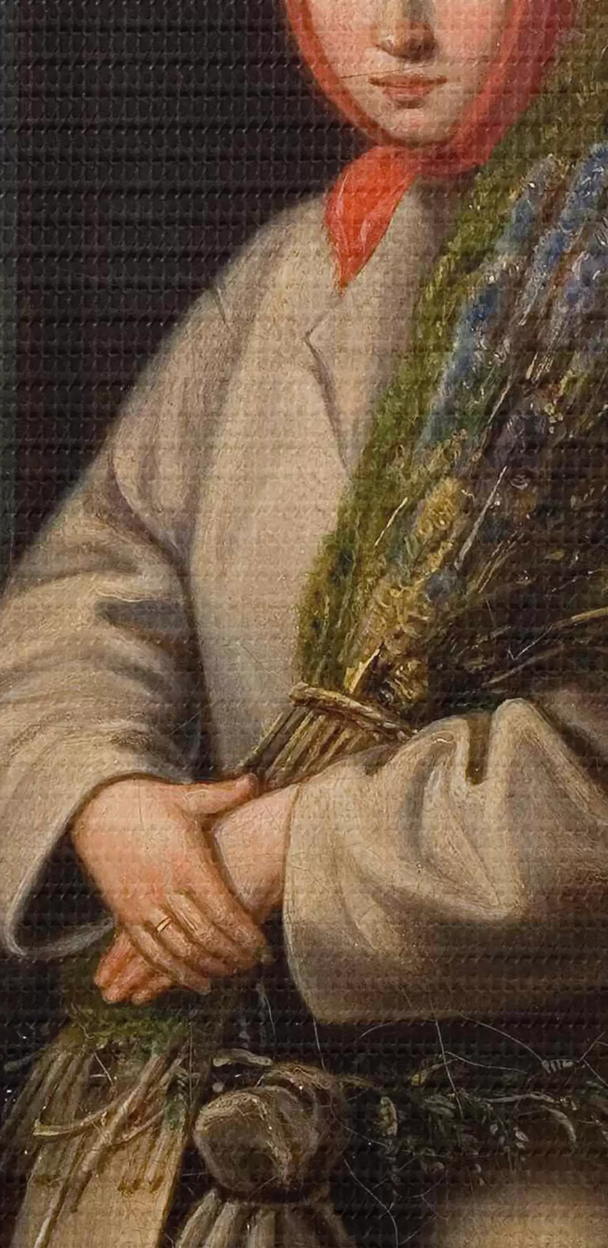 Selle lõuendi peenike niidipunus meenutab professionaalse kunstniku lõuendi pinda.