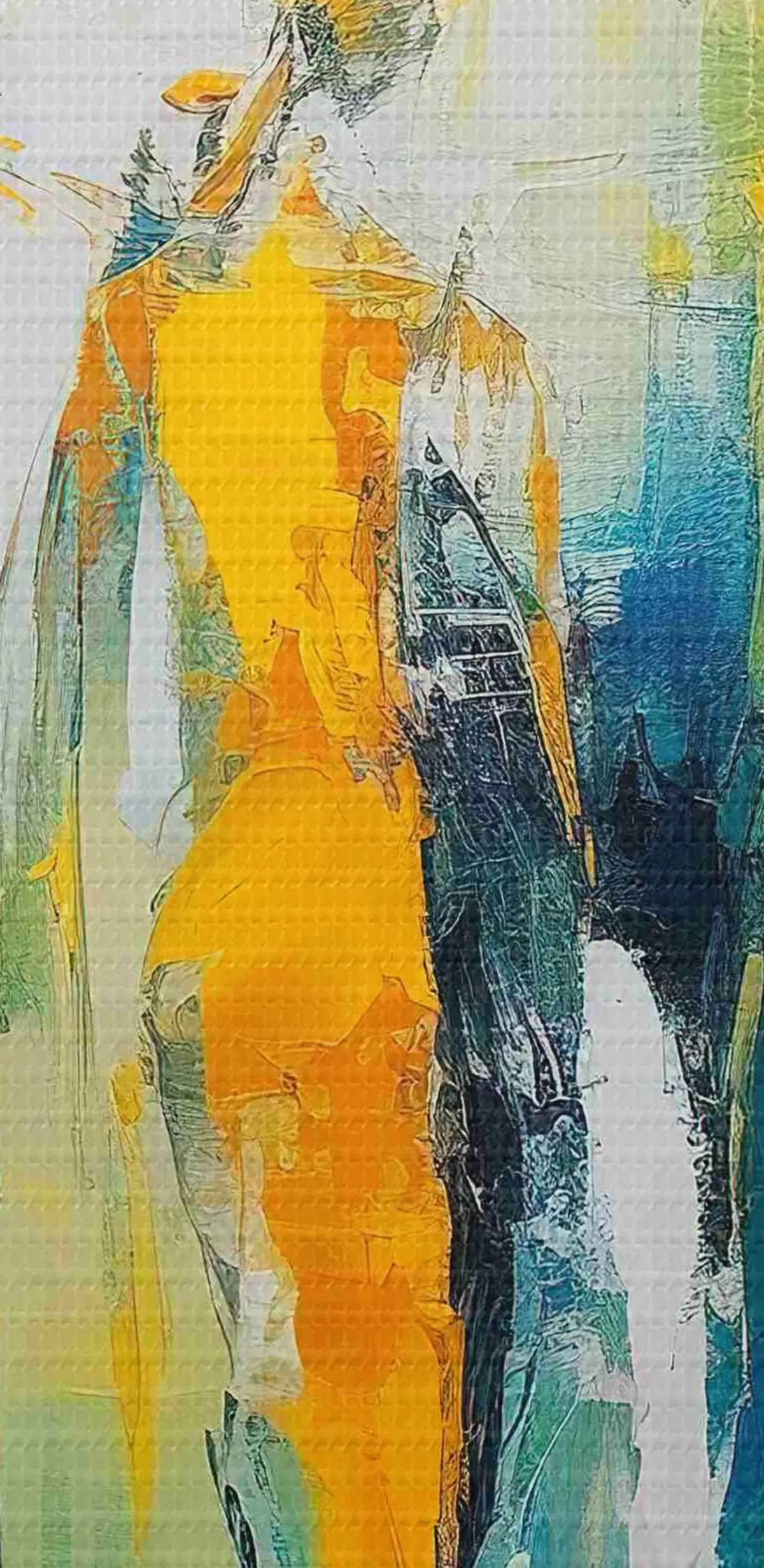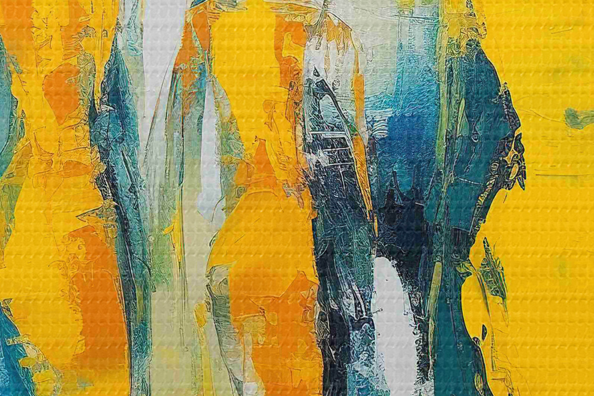 Selle lõuendi peenike niidipunus meenutab professionaalse kunstniku lõuendi pinda.