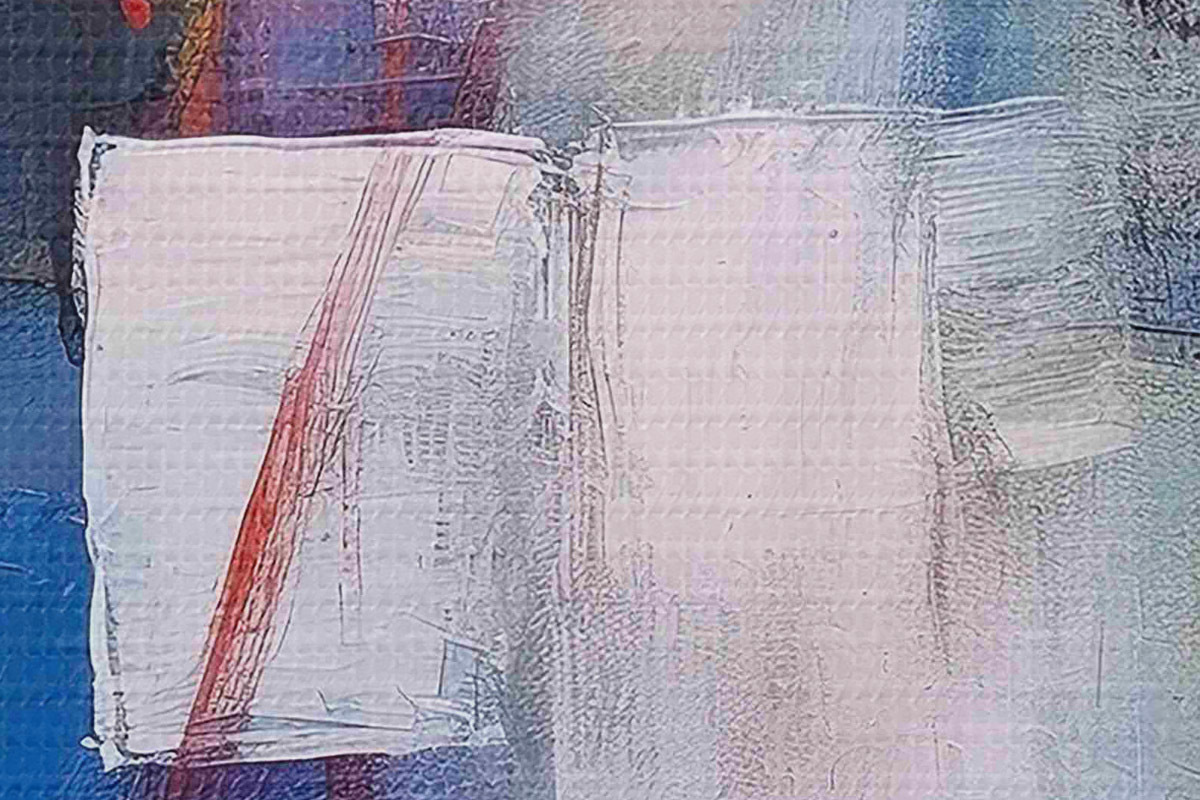 Selle lõuendi peenike niidipunus meenutab professionaalse kunstniku lõuendi pinda.