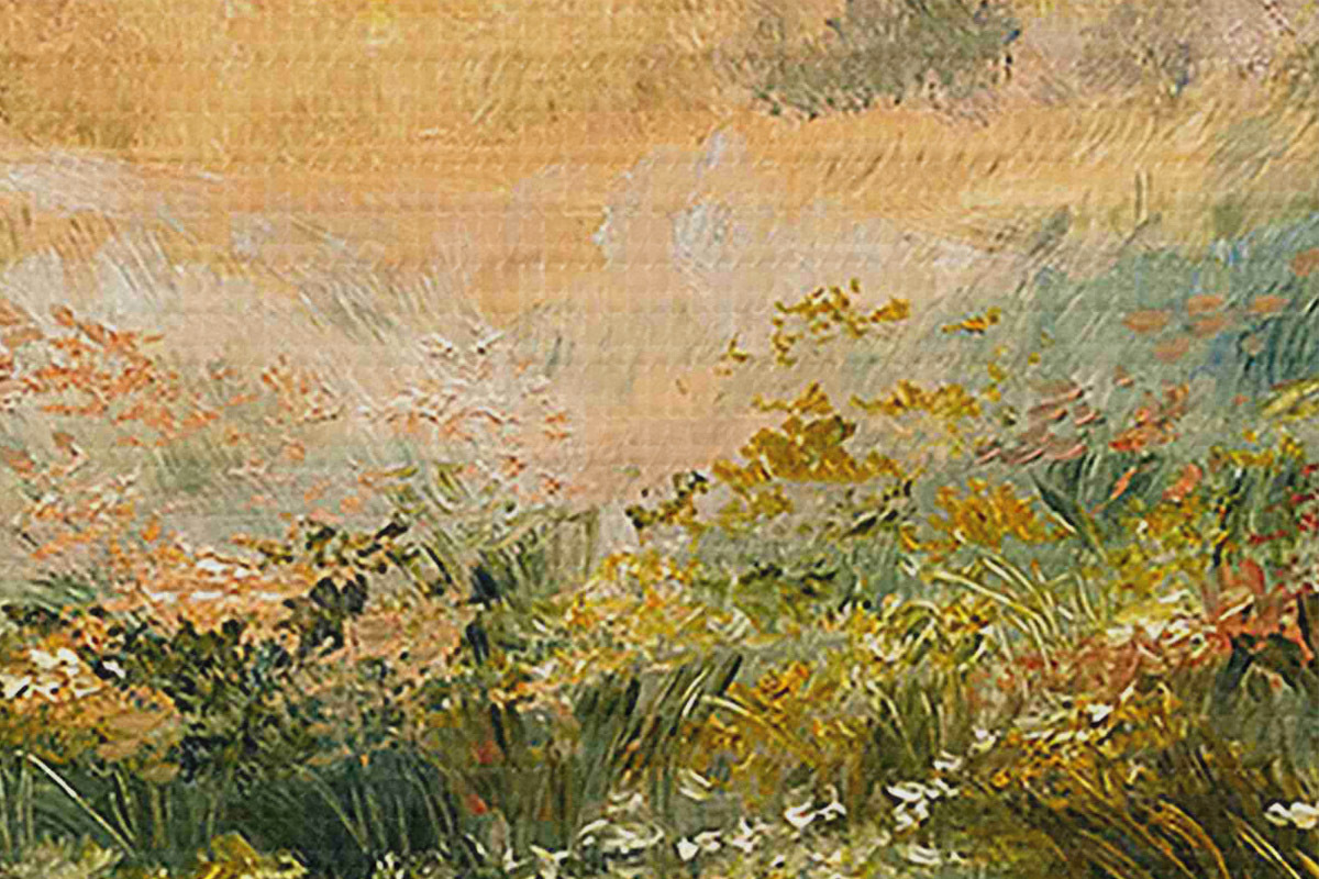 Selle lõuendi peenike niidipunus meenutab professionaalse kunstniku lõuendi pinda.