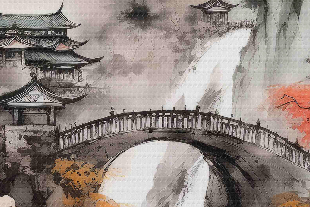 Pilt Hiina maastik koos sillaga Nr r34627