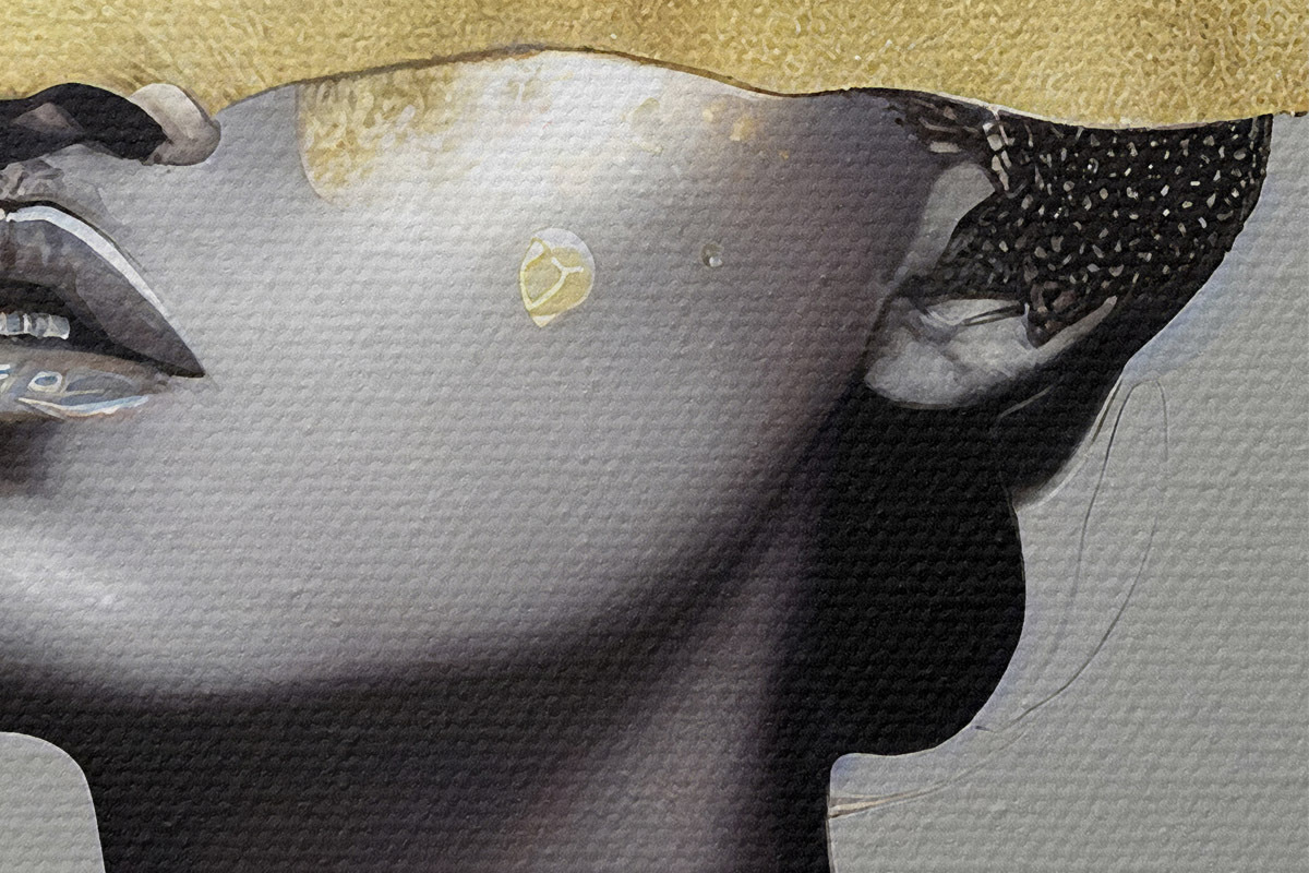 Selle lõuendi peenike niidipunus meenutab professionaalse kunstniku lõuendi pinda.