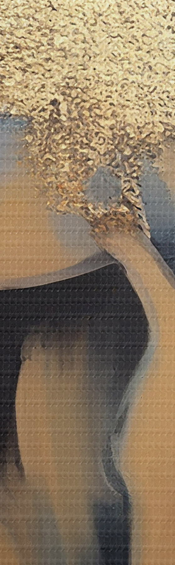 Selle lõuendi peenike niidipunus meenutab professionaalse kunstniku lõuendi pinda.