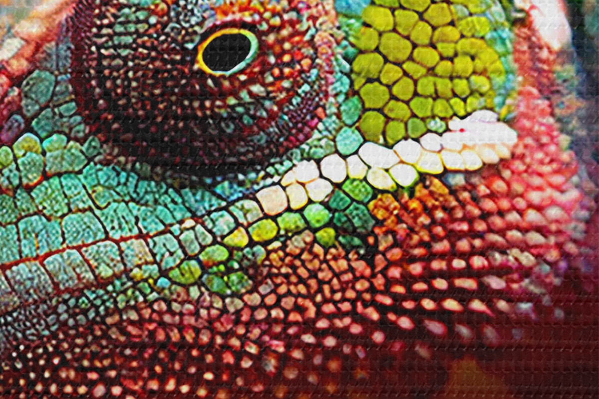 Selle lõuendi peenike niidipunus meenutab professionaalse kunstniku lõuendi pinda.
