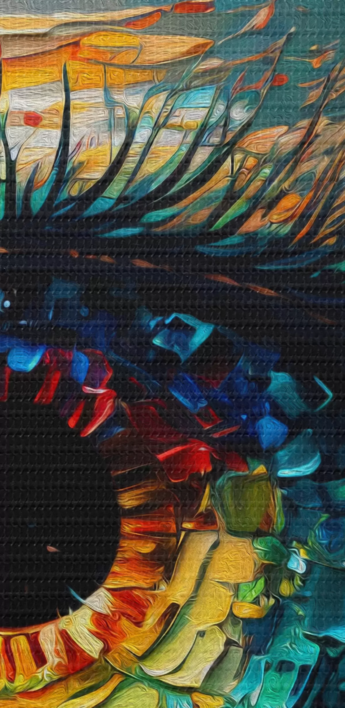 Selle lõuendi peenike niidipunus meenutab professionaalse kunstniku lõuendi pinda.