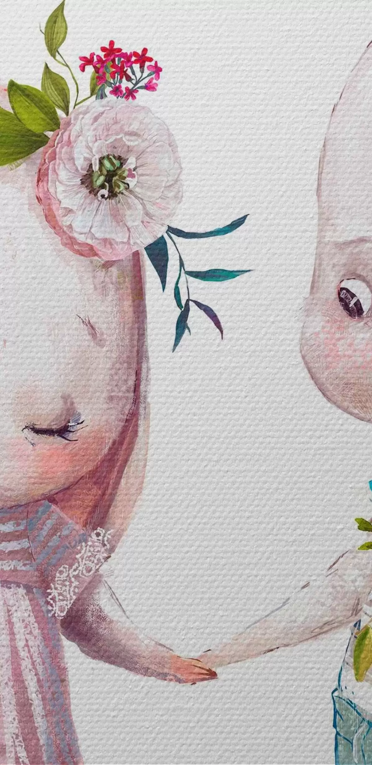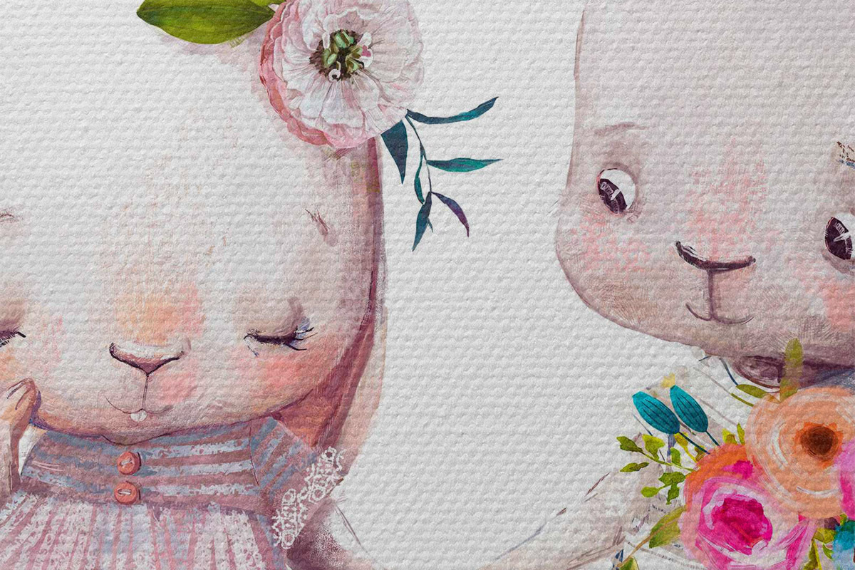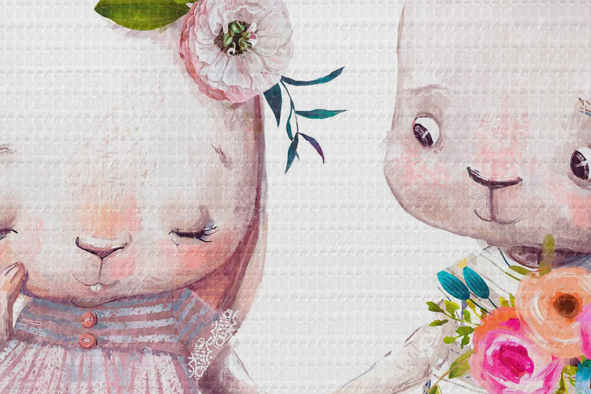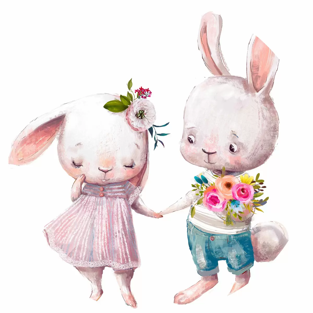 Pilt Paar kuupäevalisi jäneseid ja lilli Nr r35055
