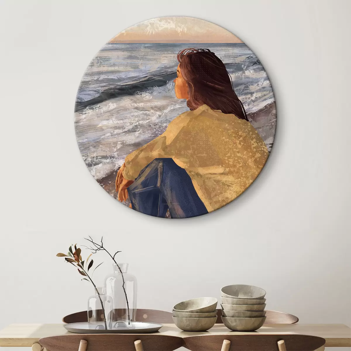 Pilt Naine mere ääres, lainete üle mõtiskledes Nr r35317