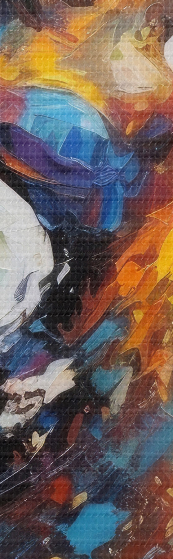 Selle lõuendi peenike niidipunus meenutab professionaalse kunstniku lõuendi pinda.