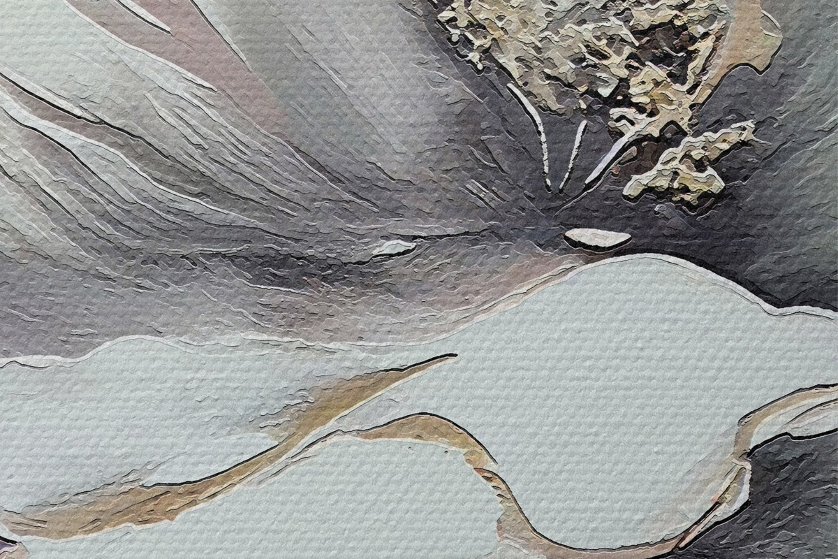 Selle lõuendi peenike niidipunus meenutab professionaalse kunstniku lõuendi pinda.