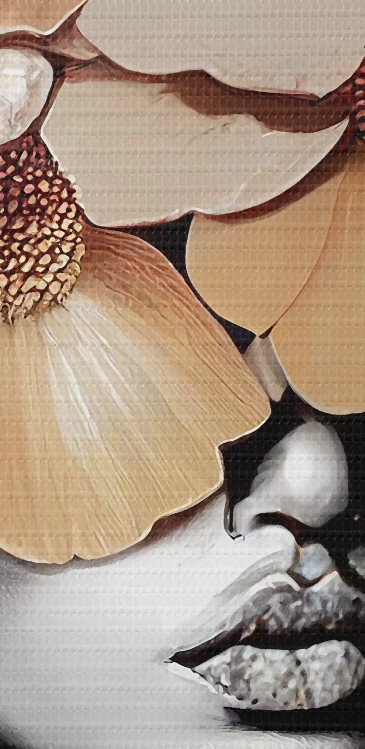 Selle lõuendi peenike niidipunus meenutab professionaalse kunstniku lõuendi pinda.